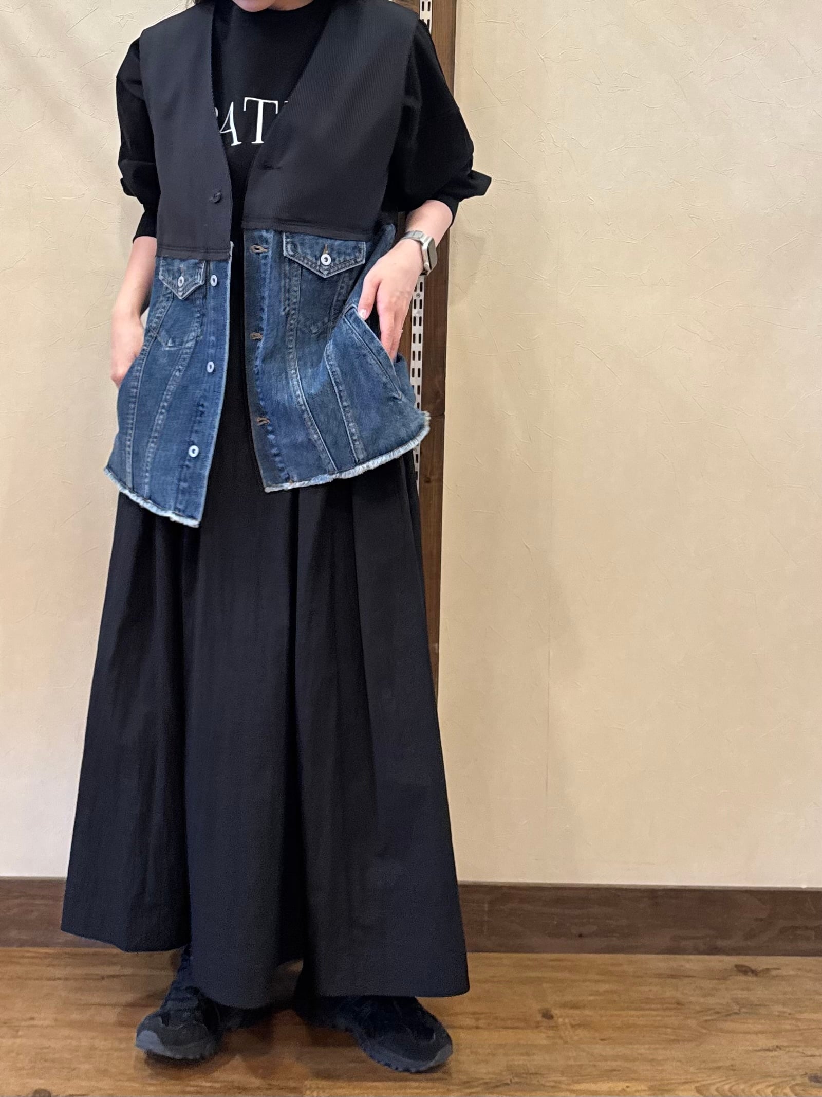 2025AW anana リップストックタックギャザースカートa89-010 ブラック