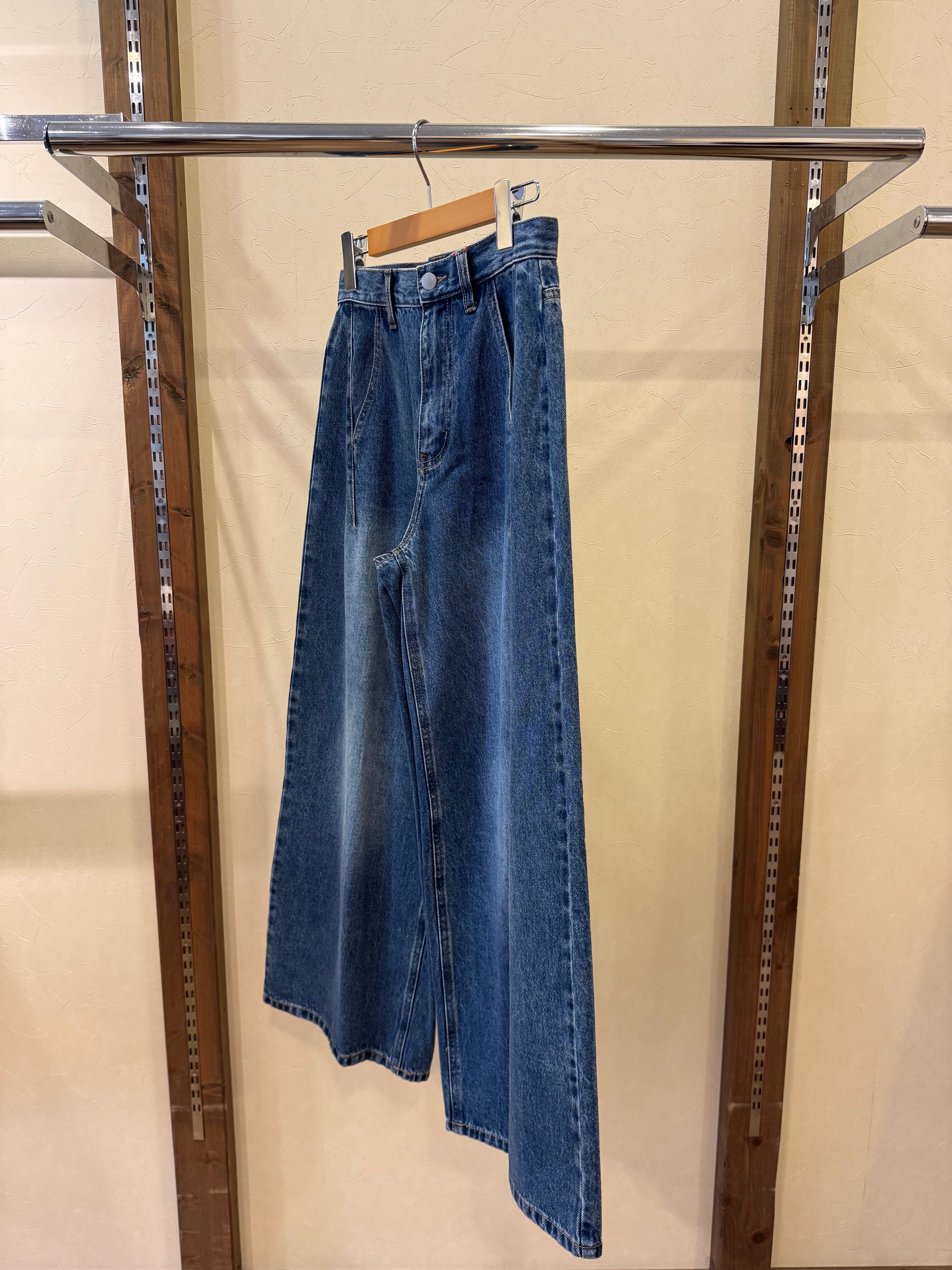 こだわり抜いたデザインで仕立てられたワイドデニムパンツ。ウエストの内側に施されたステッチが美しいシルエットを演出、細見え足長効果も実現しました。リラックスした着心地なのにスタイリッシュな印象を持つ一着です。