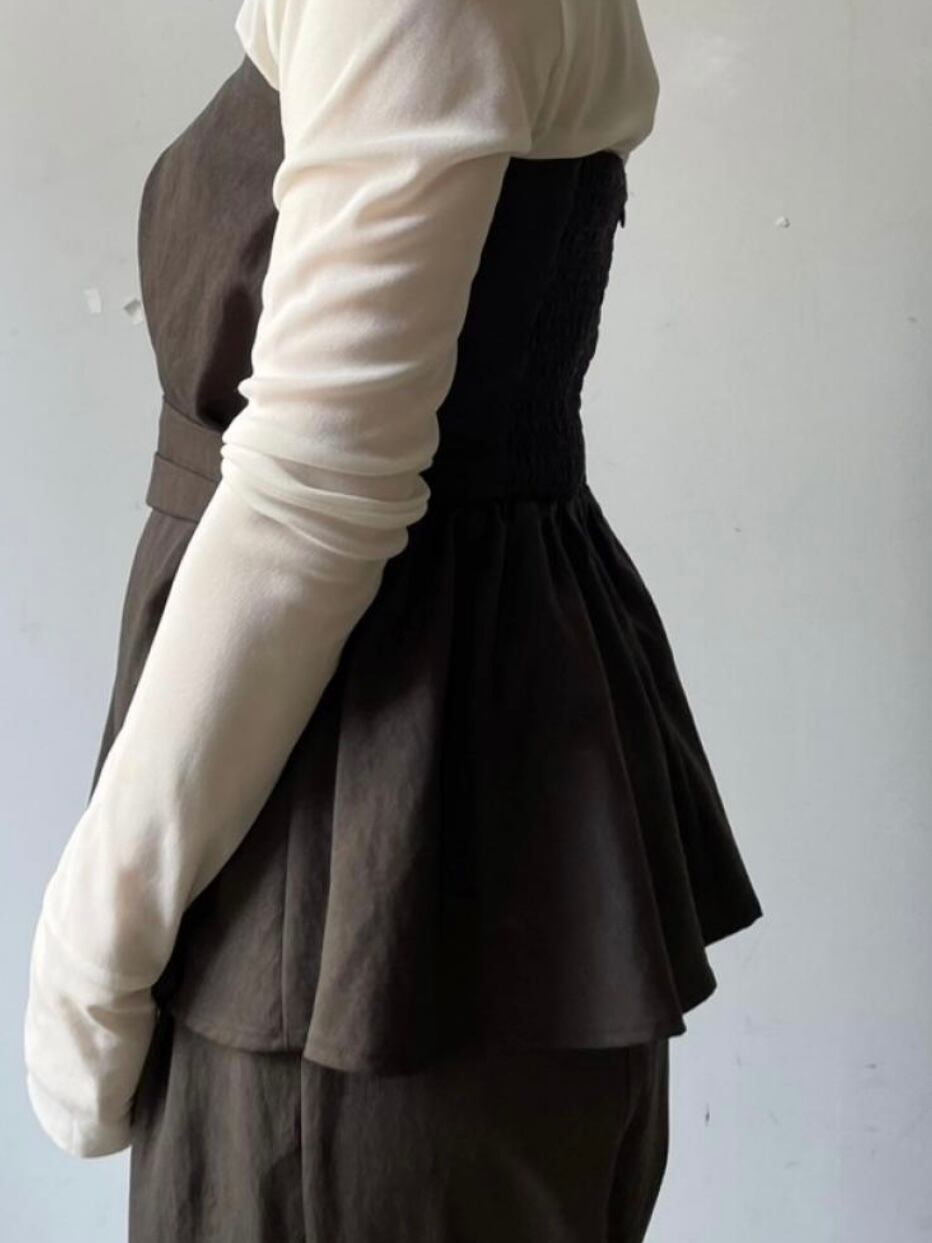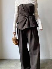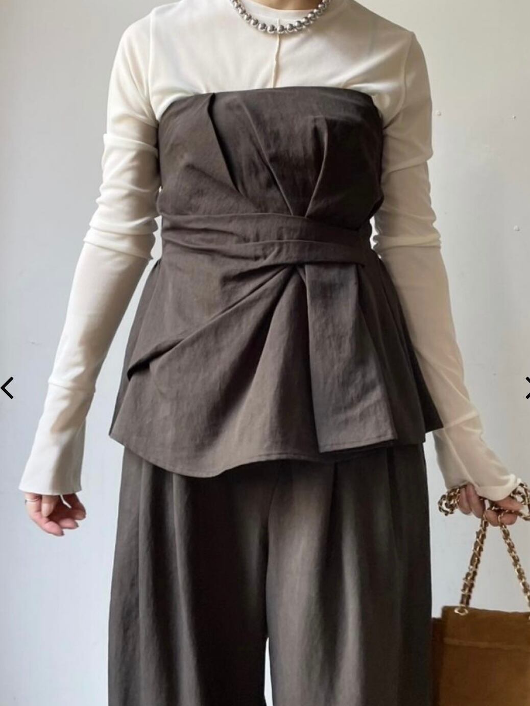 アシンメトリーに施したタックがオシャレ感満点ビスチェです。