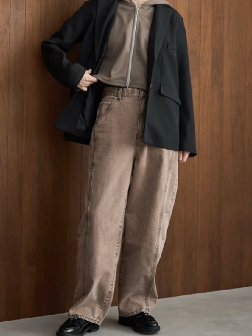 シルエットは人気のバレル型。ゆとりのあるフォルムが自然に体型をカバーしつつ、足首にかけてすっきりと見える美しいバランスに仕上げました。