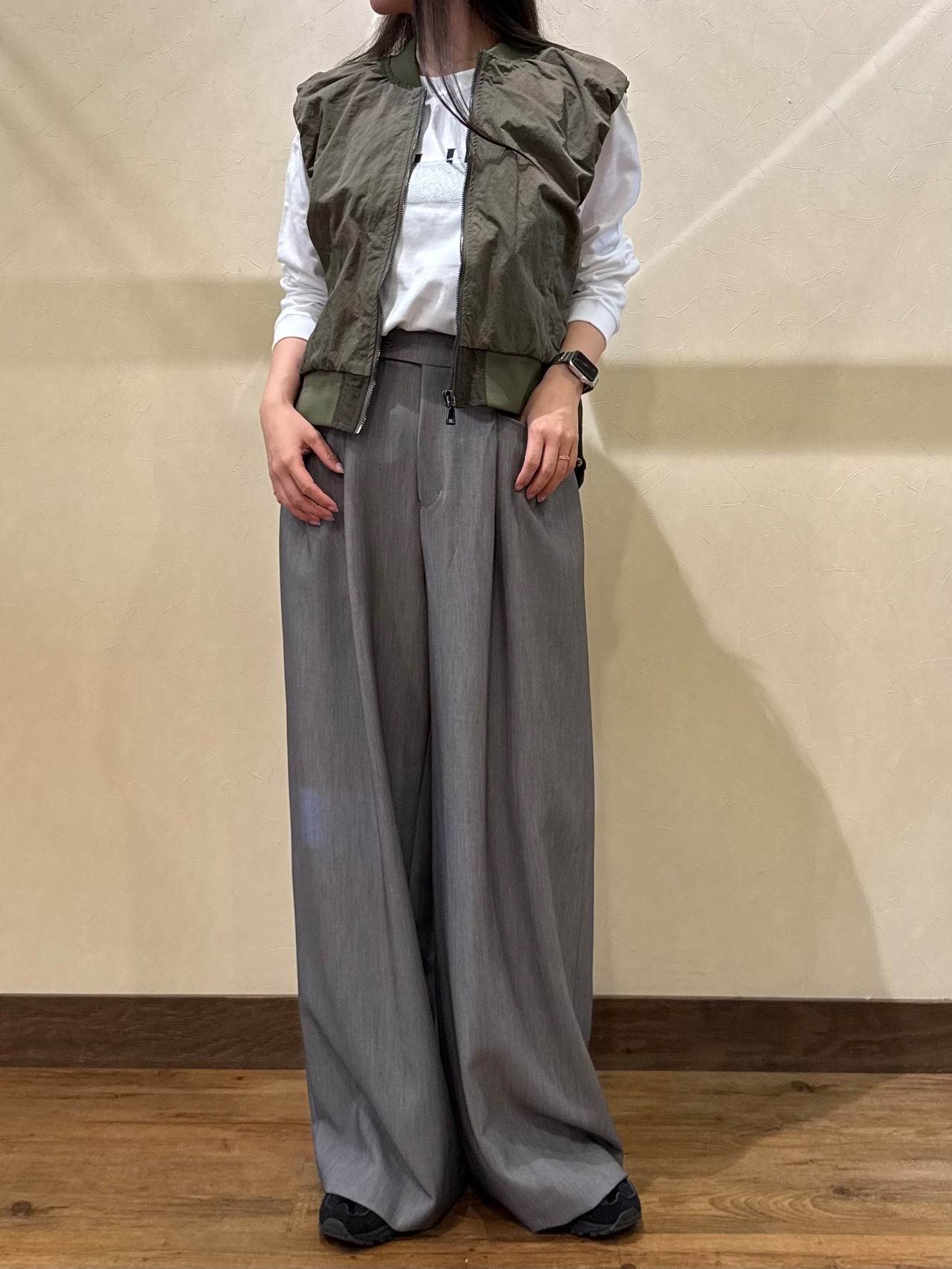 立体的なシルエットとタックディテールで、腰まわりをすっきり見せながら、体のラインを拾いすぎない程よいワイド感。トップスをタックインすれば、スタイルアップ効果も抜群です。