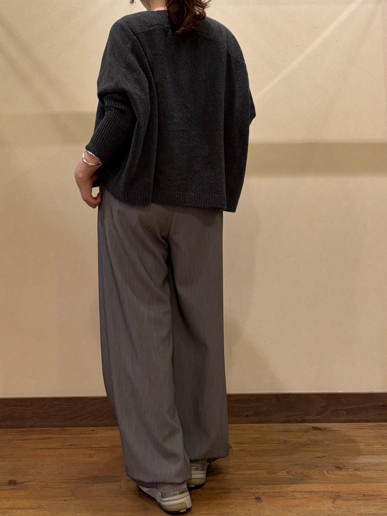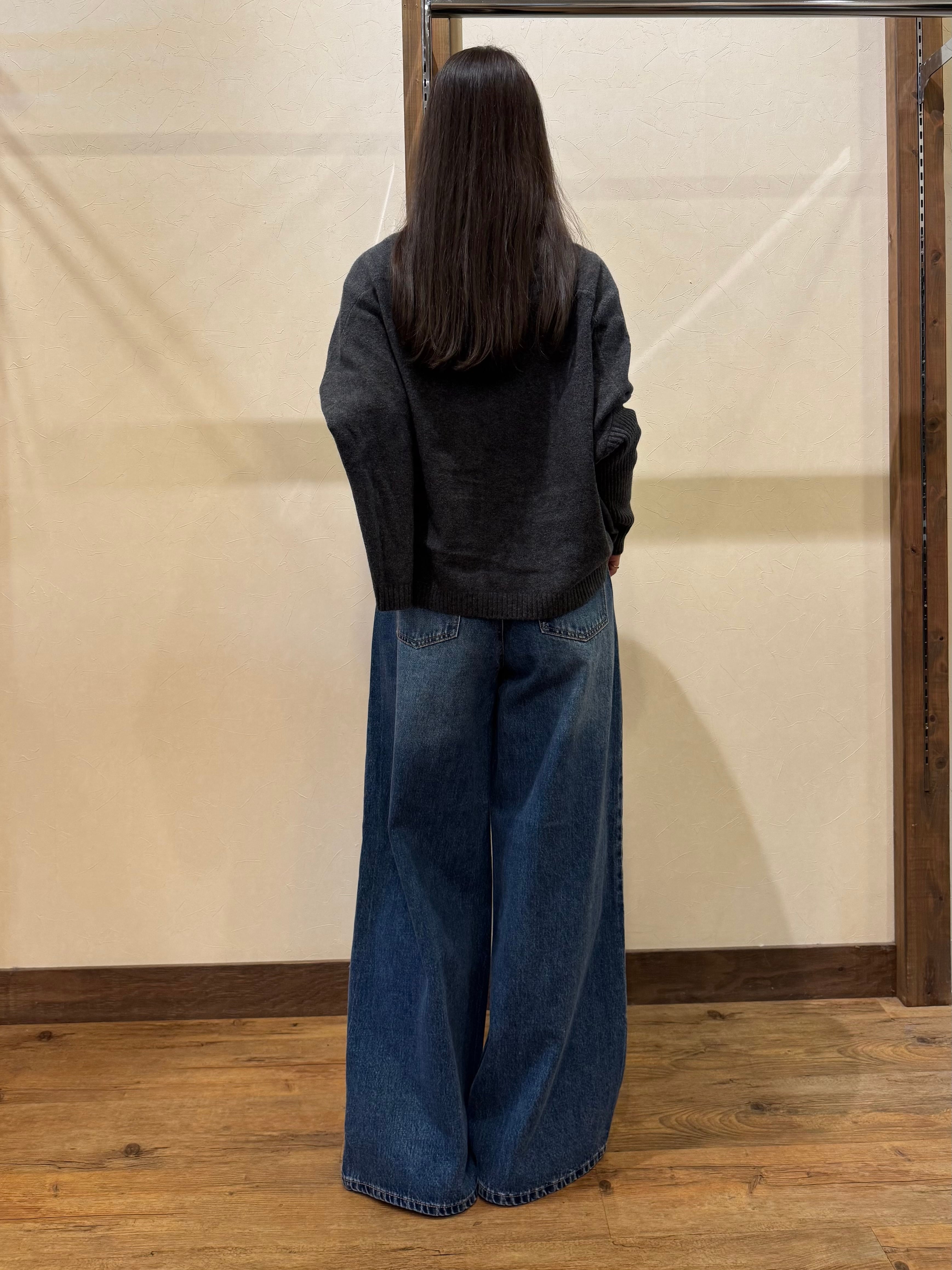 ゆったりとしたルーズなサイズ感、コンパクトな着丈、ほどよくフィットする長めのリブのお袖、パッと織るだけで今っぽいスタイリングが叶います