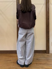 アームホールにゆとりがあるので、スウェットやニットなど、ボリューム感のあるトップスとのレイヤードにも相性抜群です。