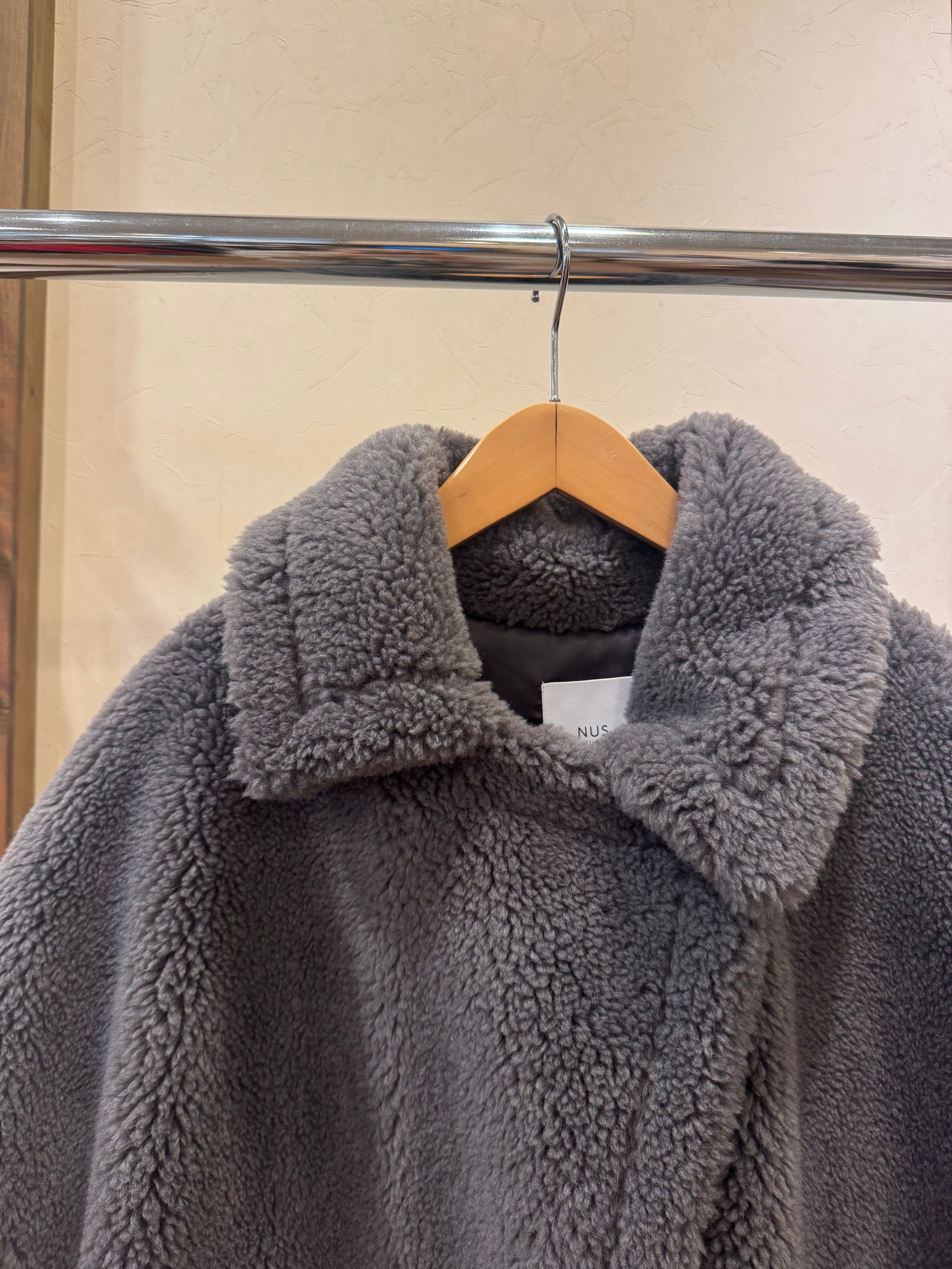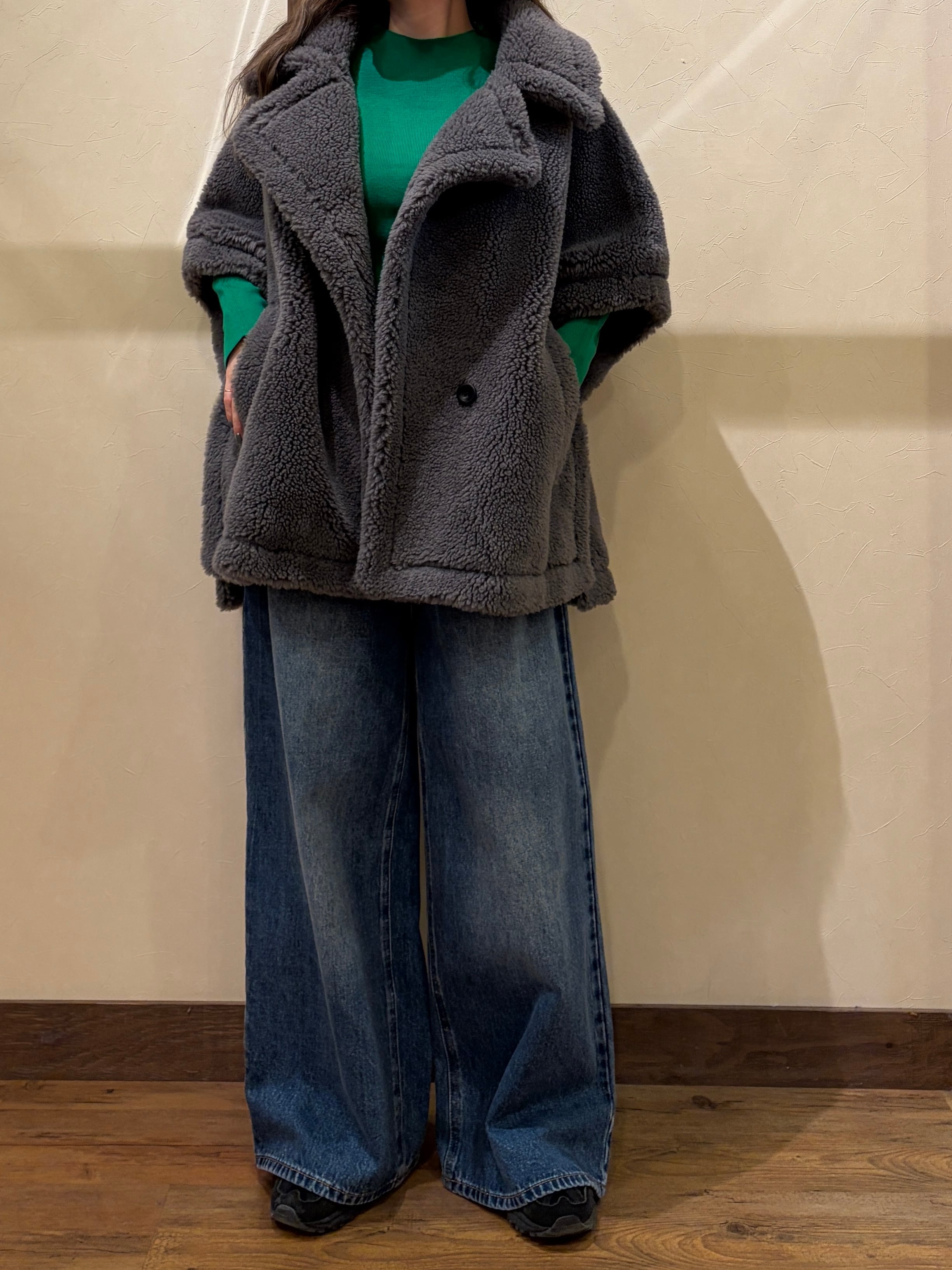 ウール混で保温性バッチリの長毛ボア素材。ふんわり柔らかな風合いが魅