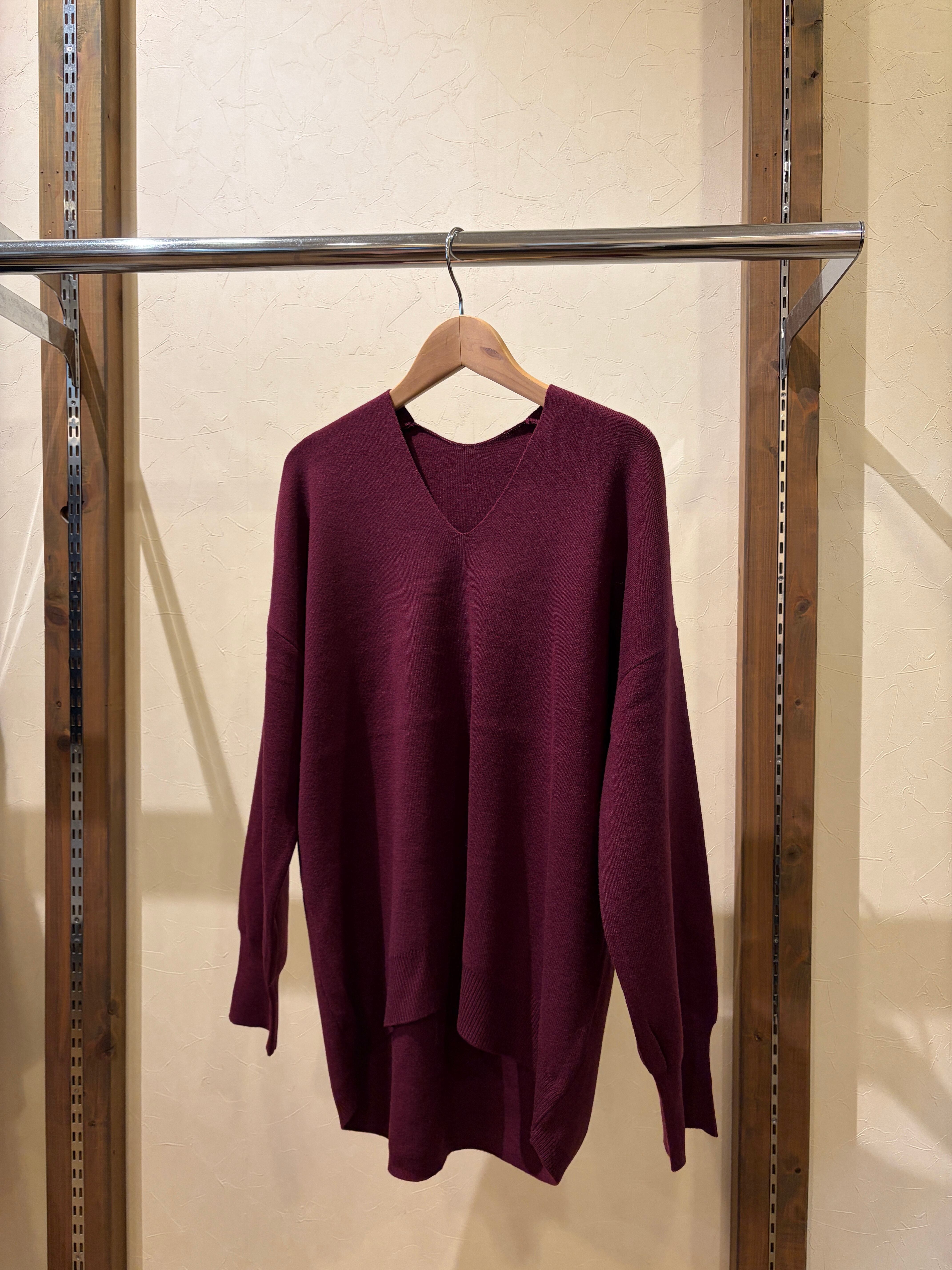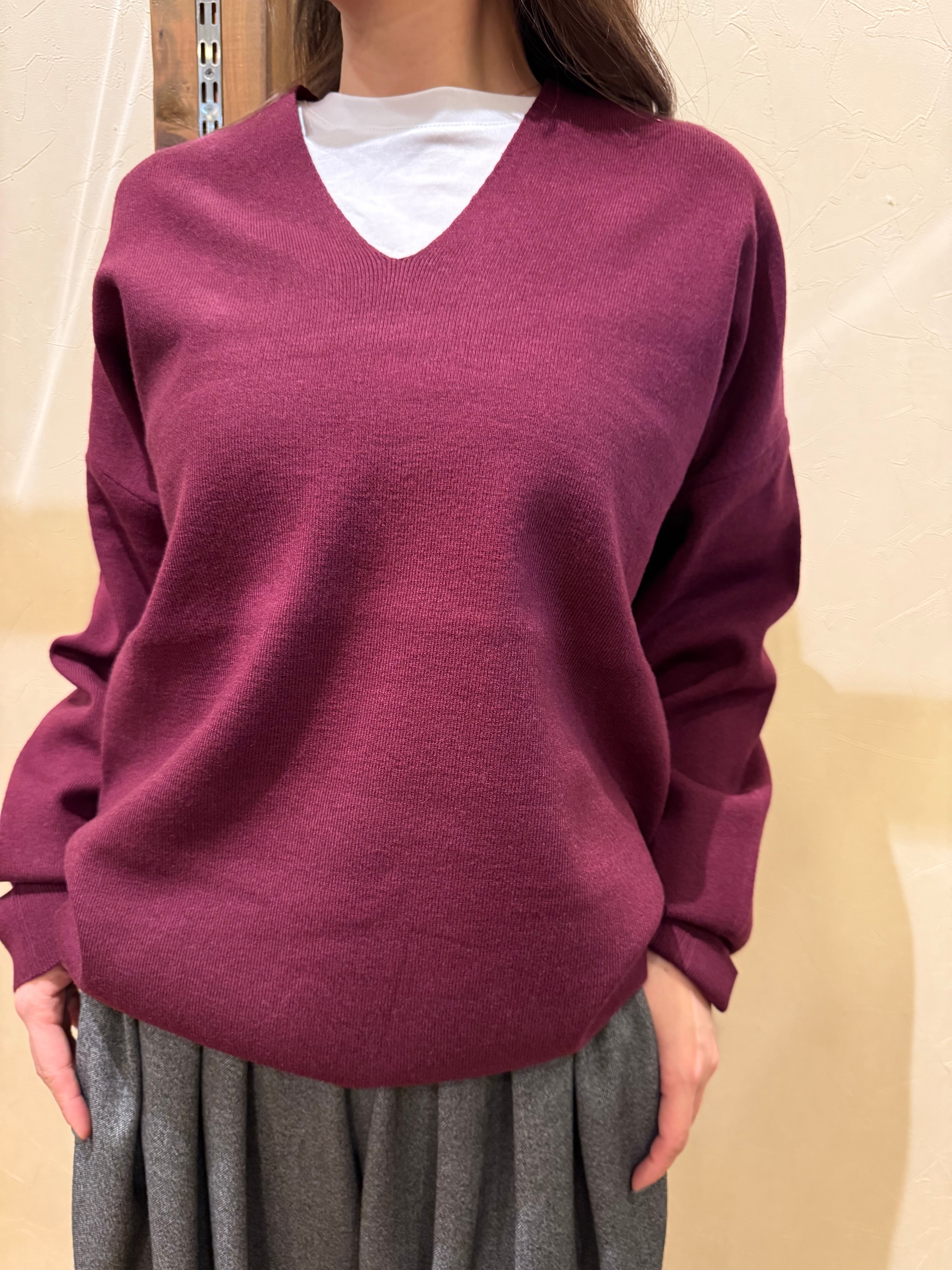 2025AW hunch 静電気防止 やわもちヤーン Vドルマン無地ニット WVQ7008 バーガンディ