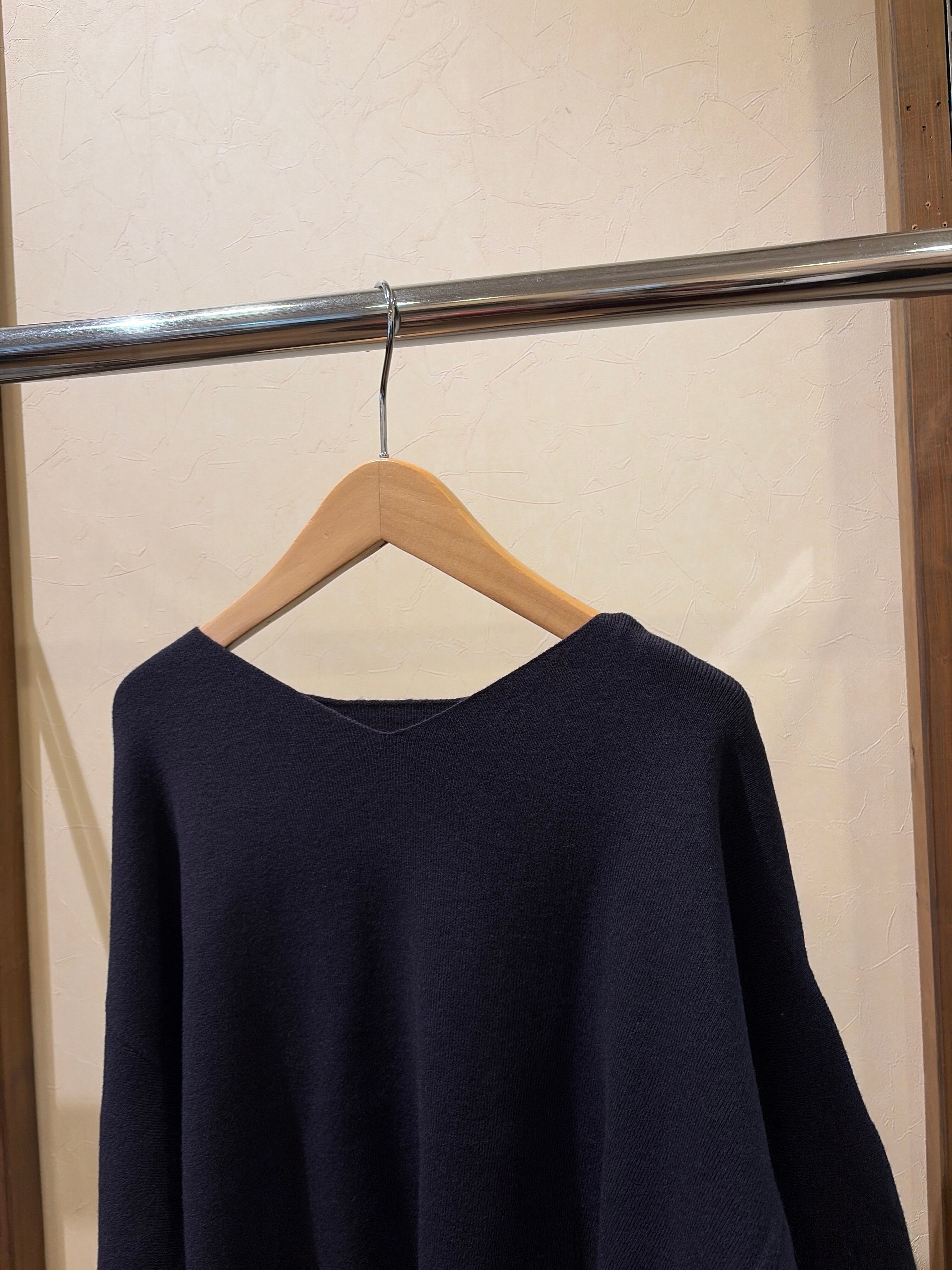 2025AW Hunch静電気防止 やわもちヤーン 袖ぽわん無地ニット WVQ7012 ネイビー