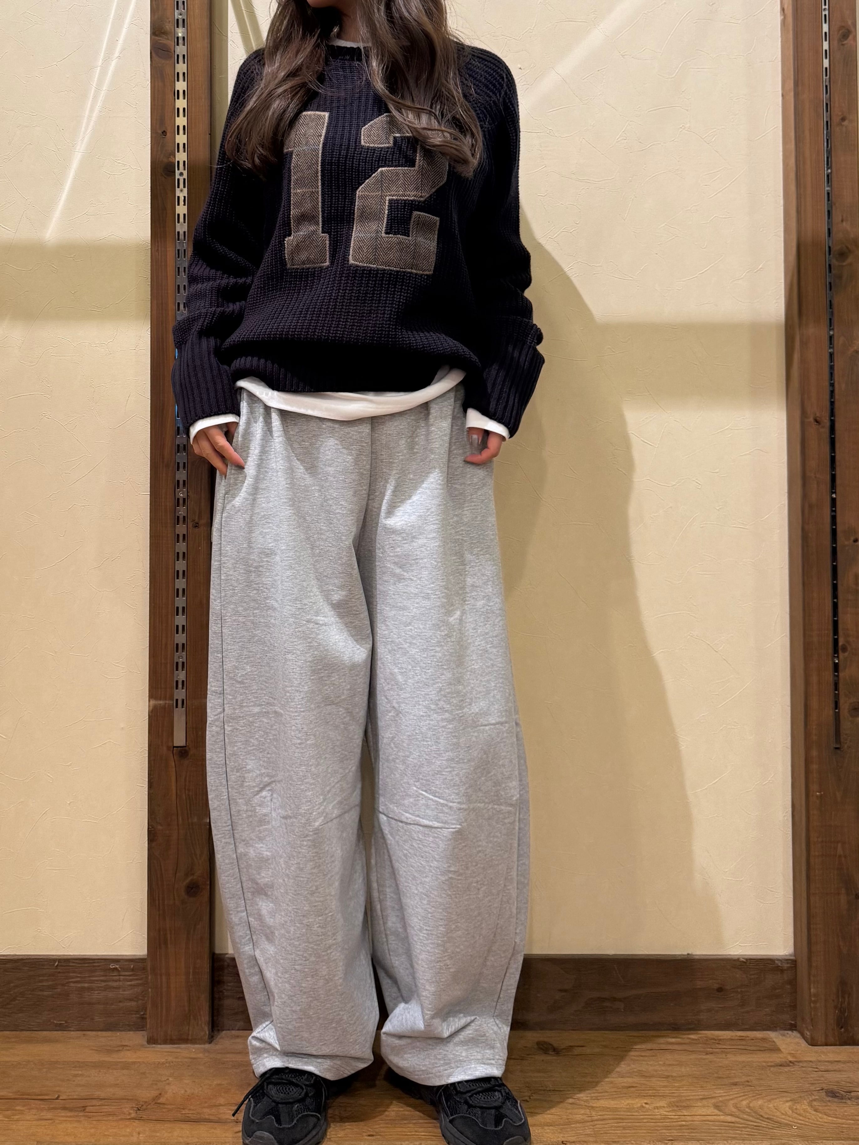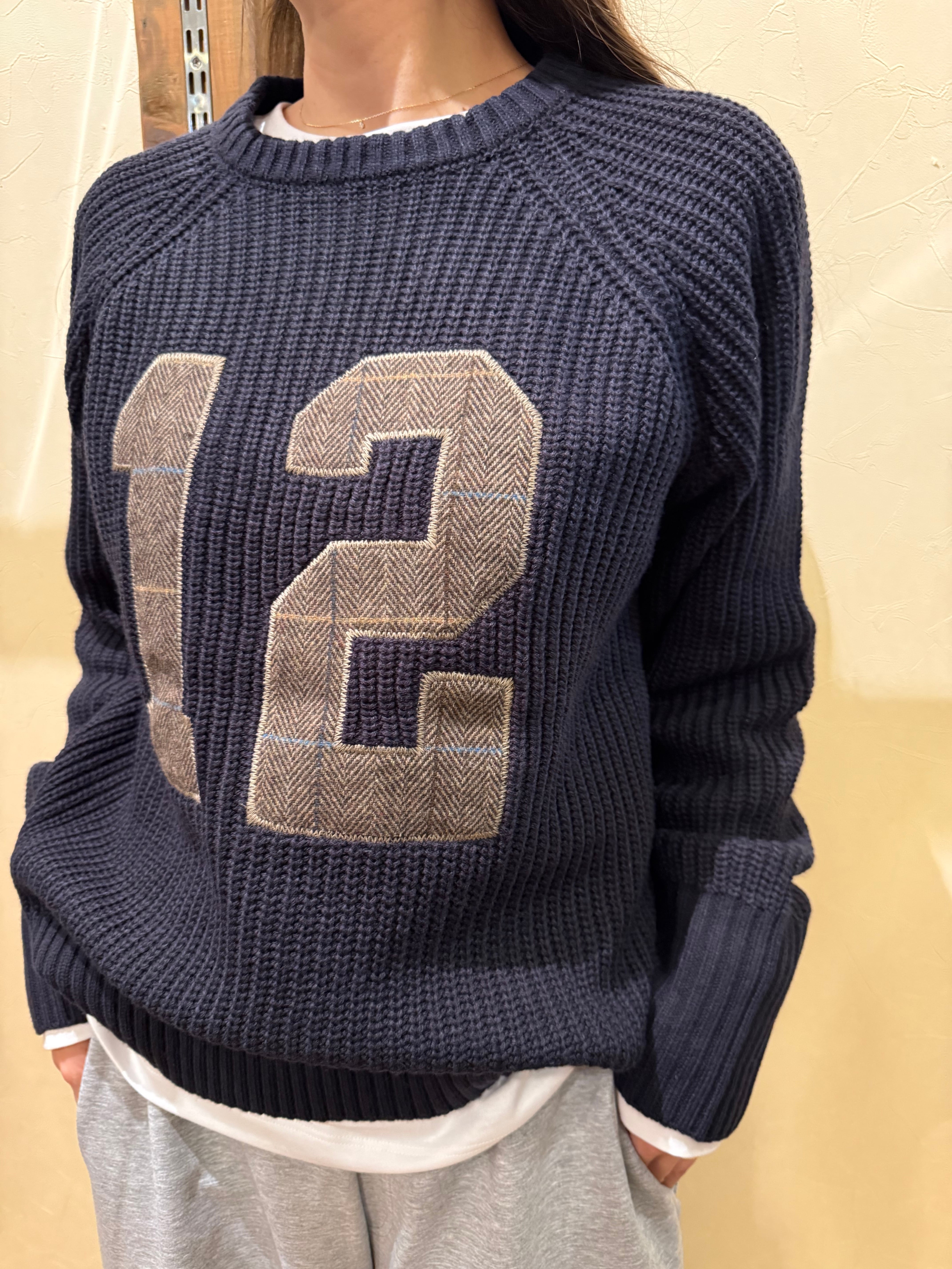 カシミヤのようにしなやかでなめらかチクチク感のない糸をほどよい肉感のあぜ編みにした編み地に、ヘリンボーンチェックの生地でナンバーリングをパッチししゅうしたプルオーバーです。パッチ布のチェック柄が身頃に馴染んだ落ち着いたカラーなので、意外とコーディネートにも取り入れやすいですよ。インにシャツを入れてきれいめカジュアルに着こなすのもオススメです。