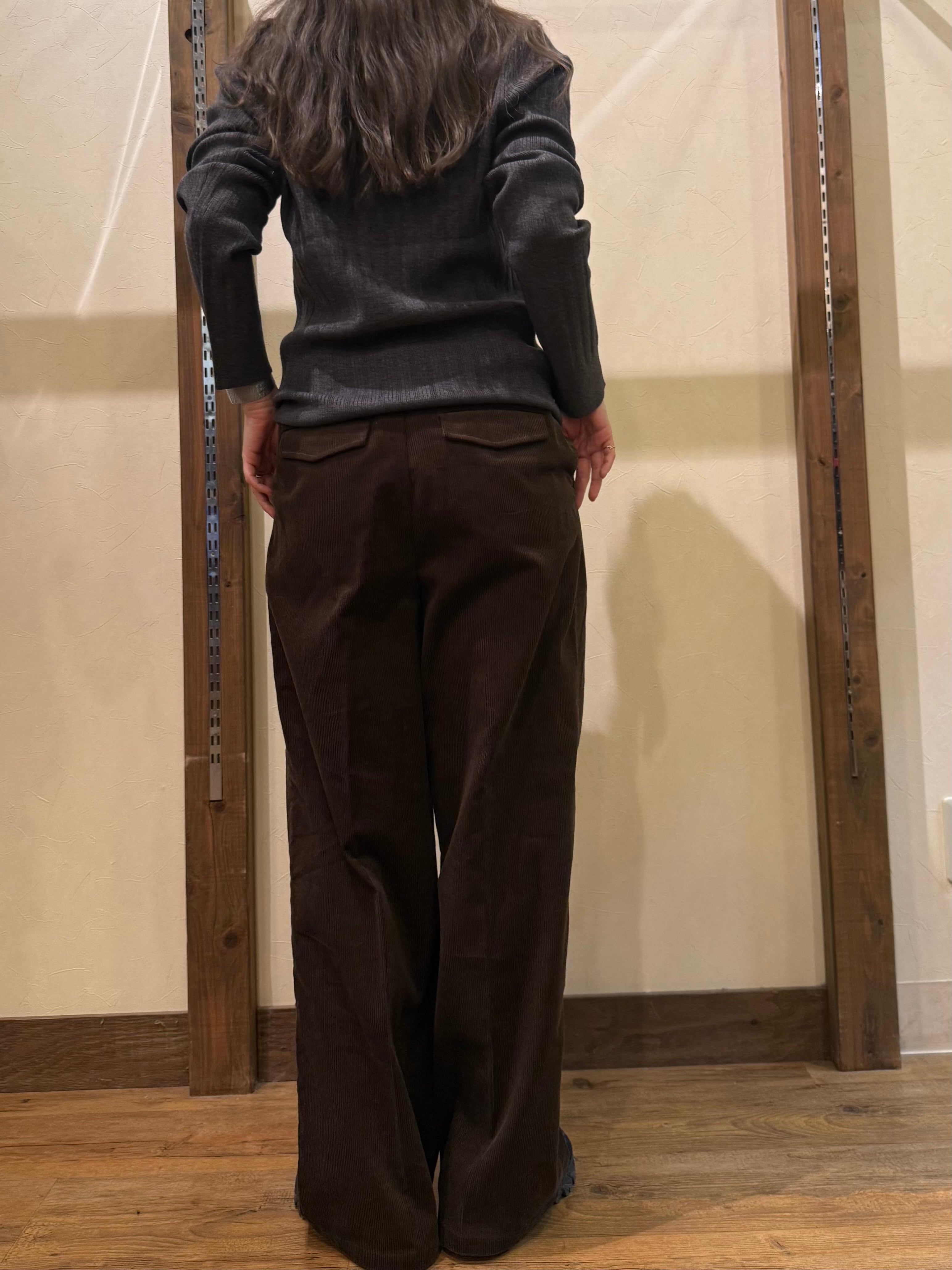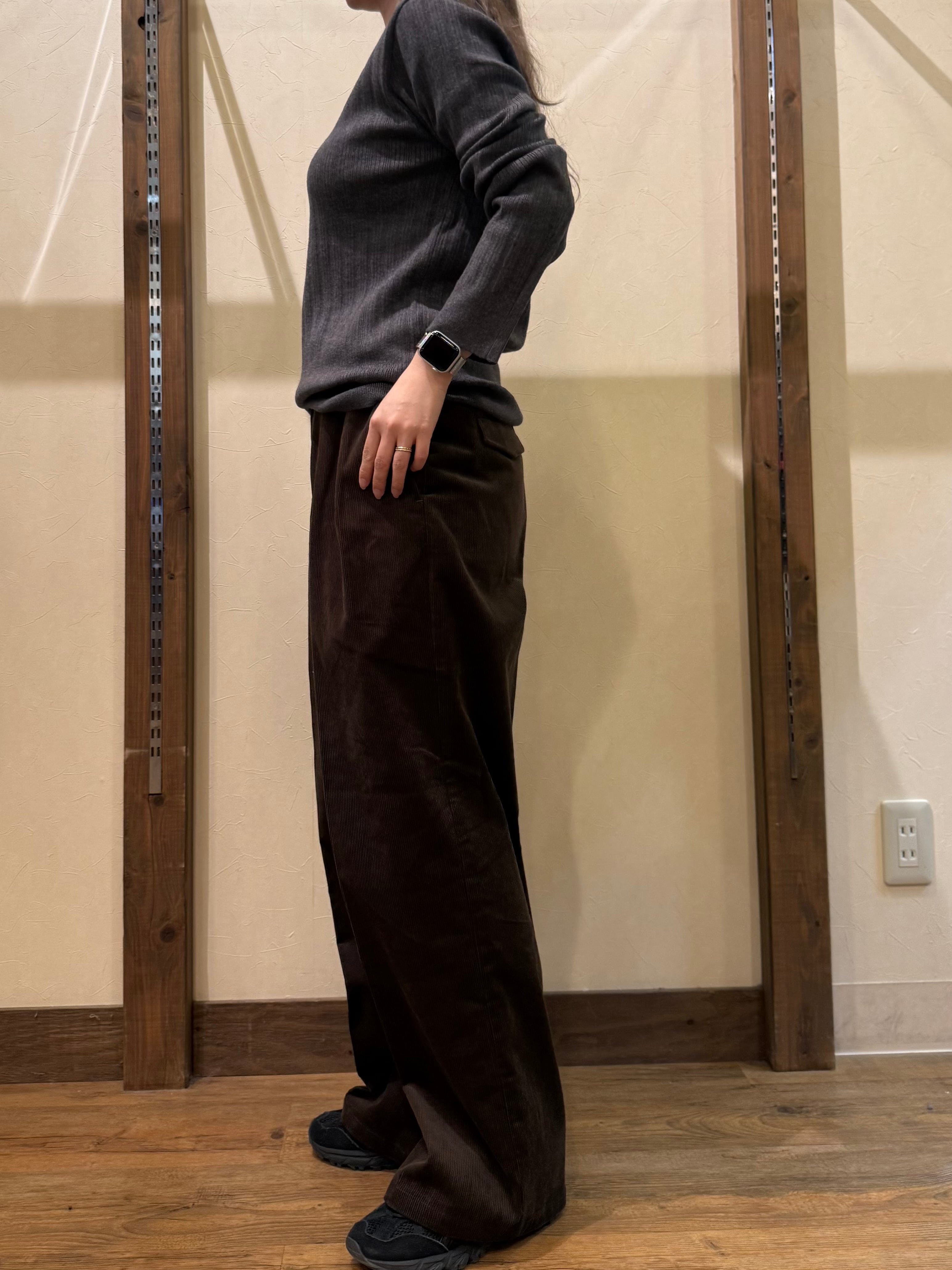 ランダムリブの凹凸感が身体のラインを拾いすぎず、着用しやすいアイテムです。