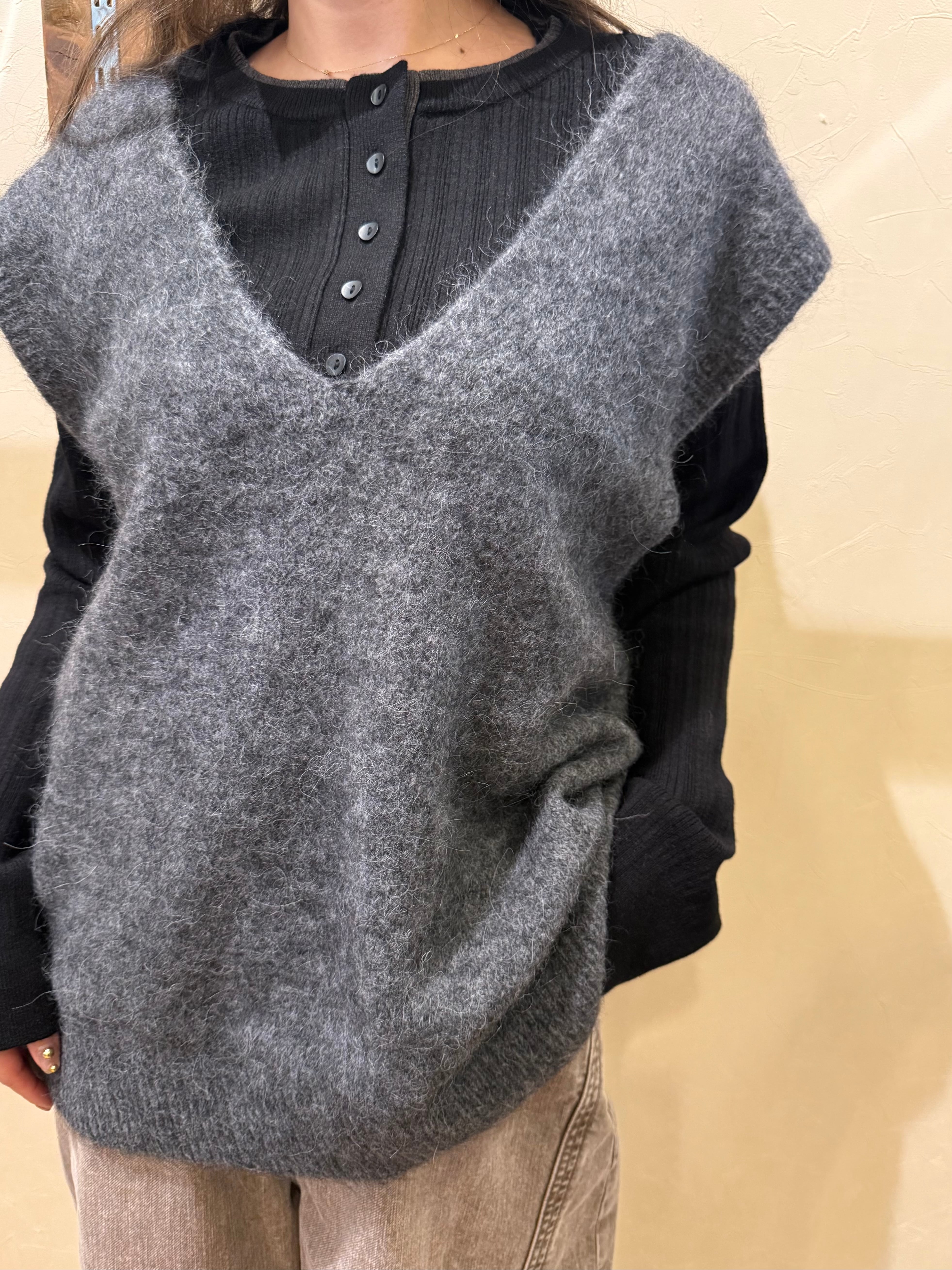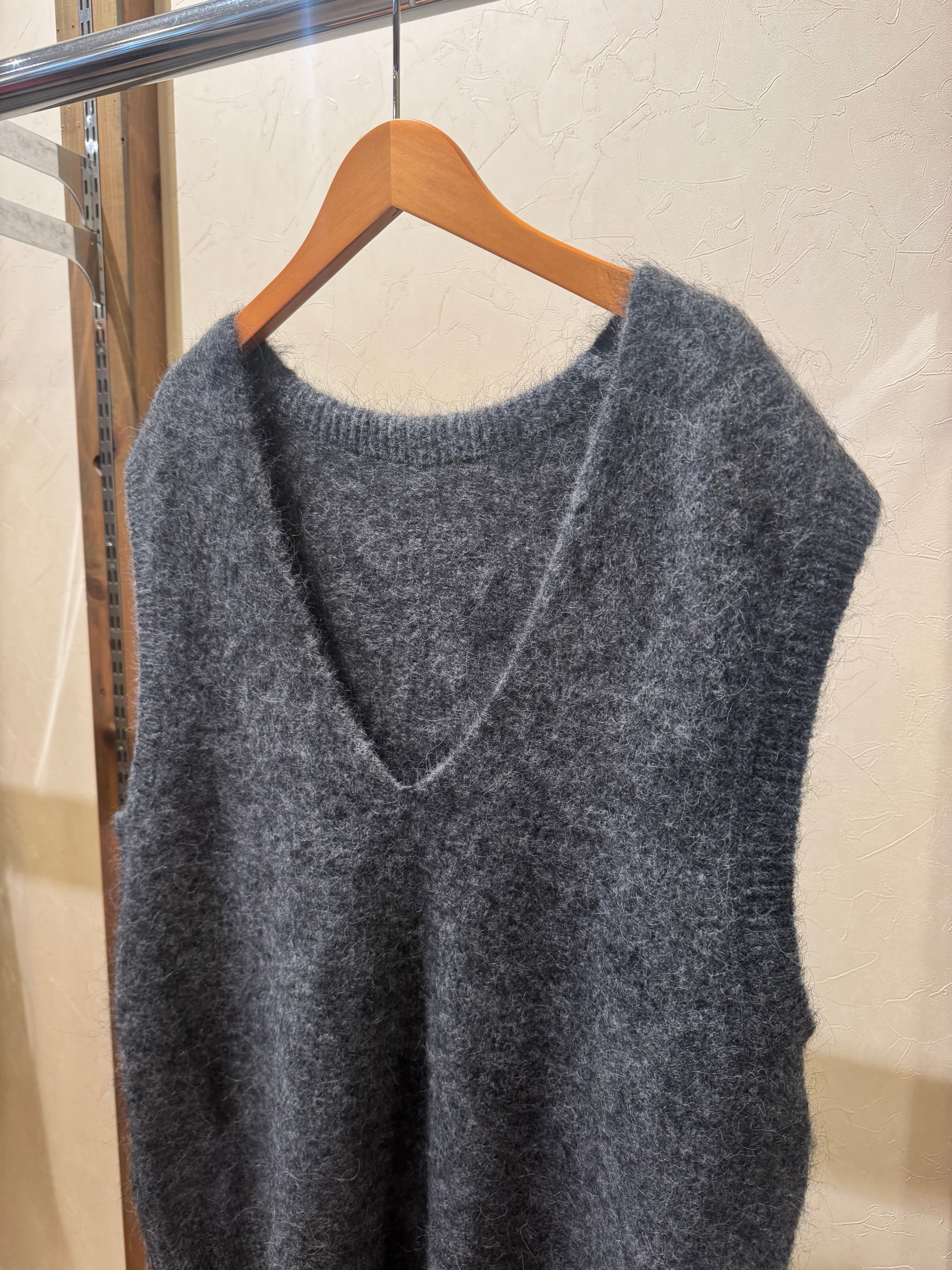 深めのVネックがポイントのアルパカ混ニットベスト。とても軽く、柔らかな着心地が特徴です。縦伸び防止加工入り。
