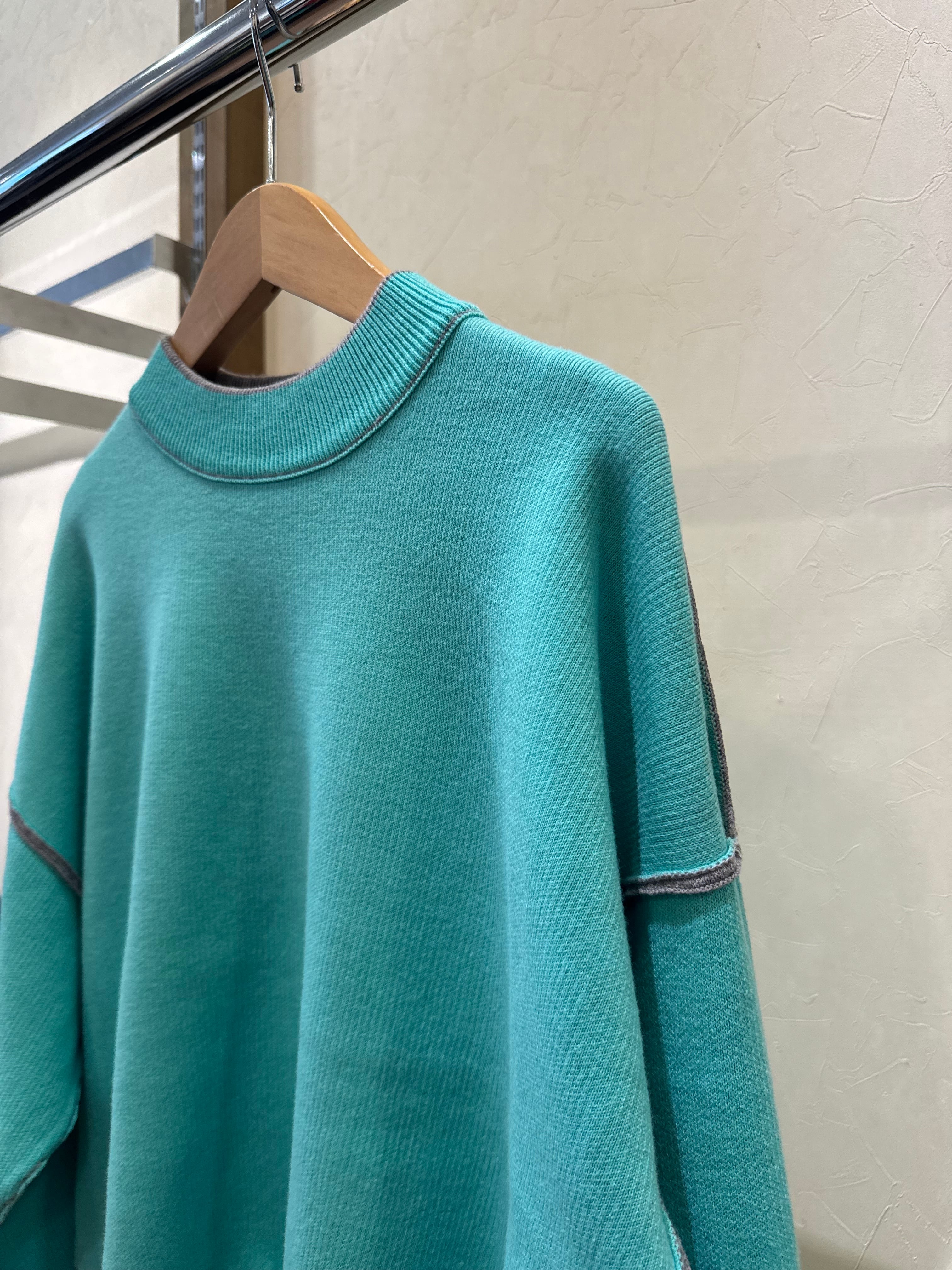 2025AW 【QTUME】コットンミックスダブルフェイスベーシッククルートップス 552‐25511 ブルー