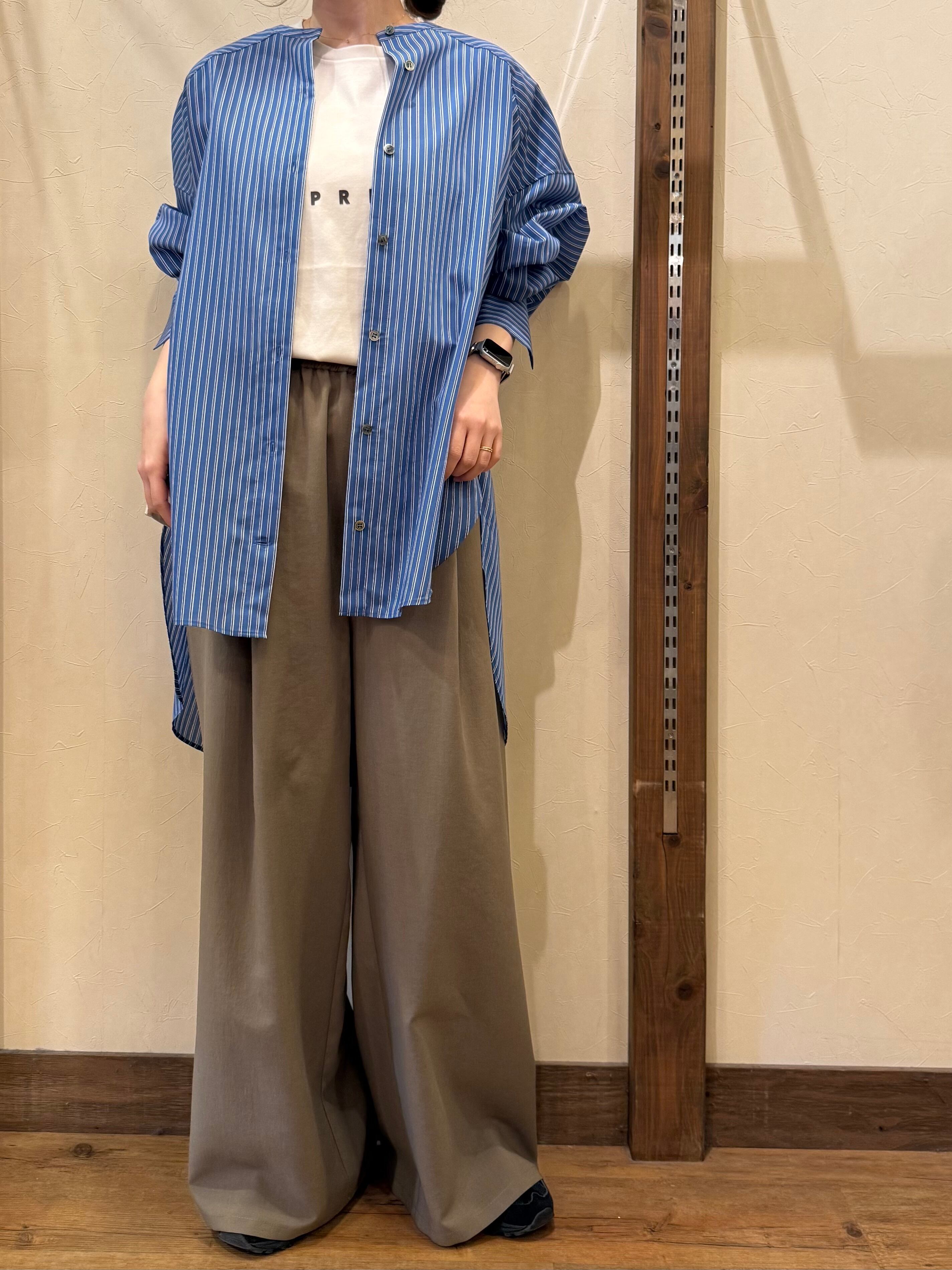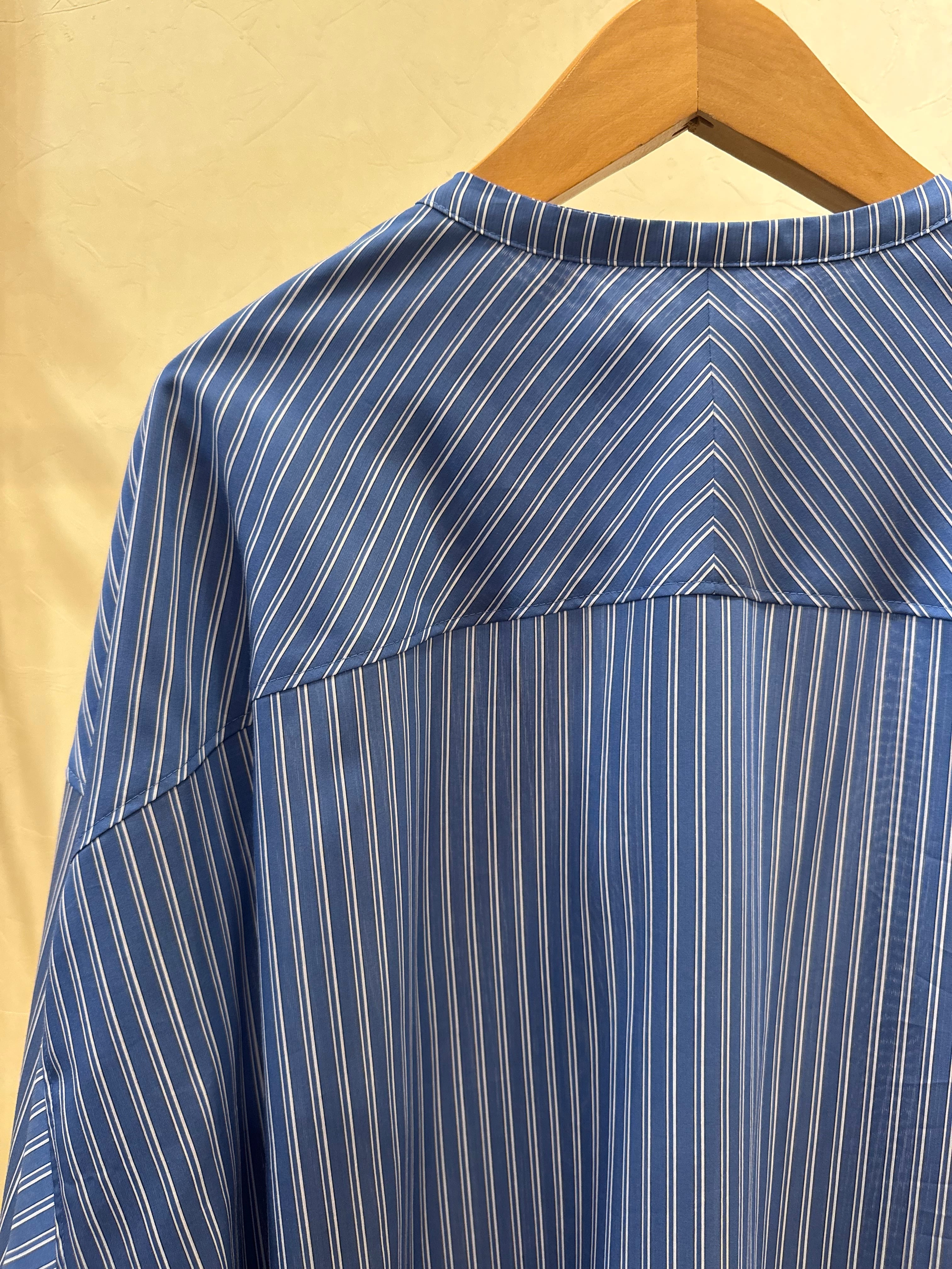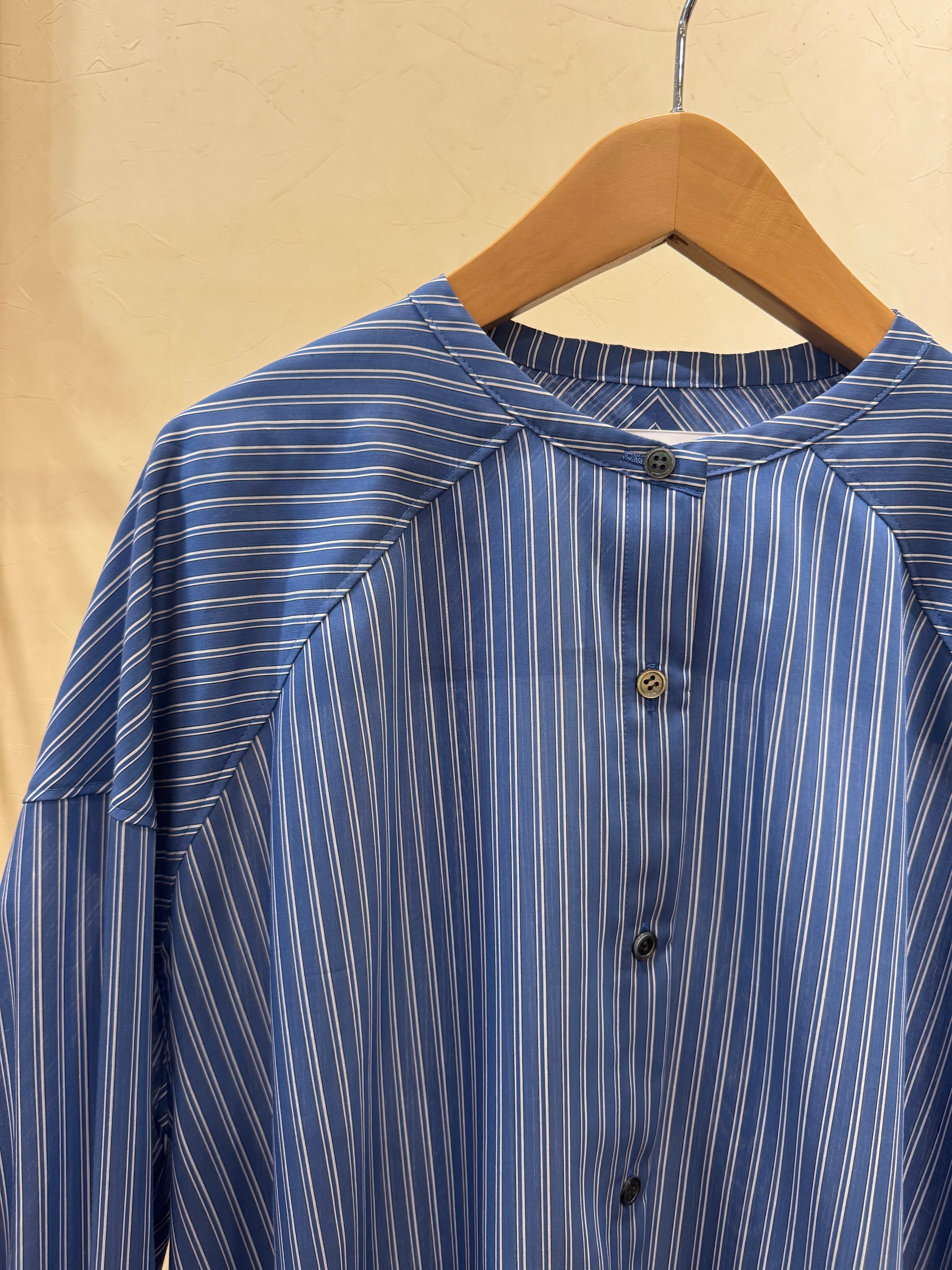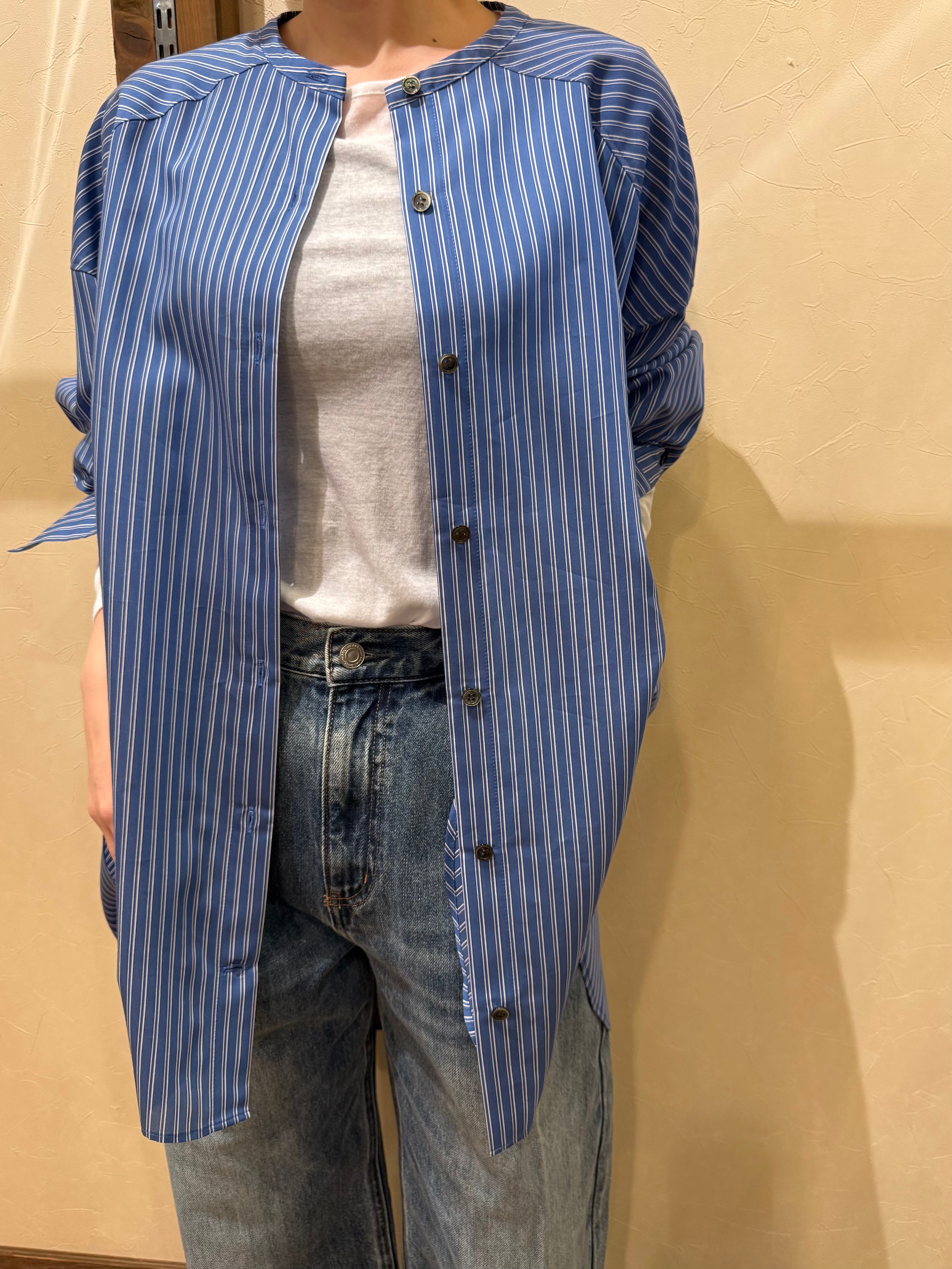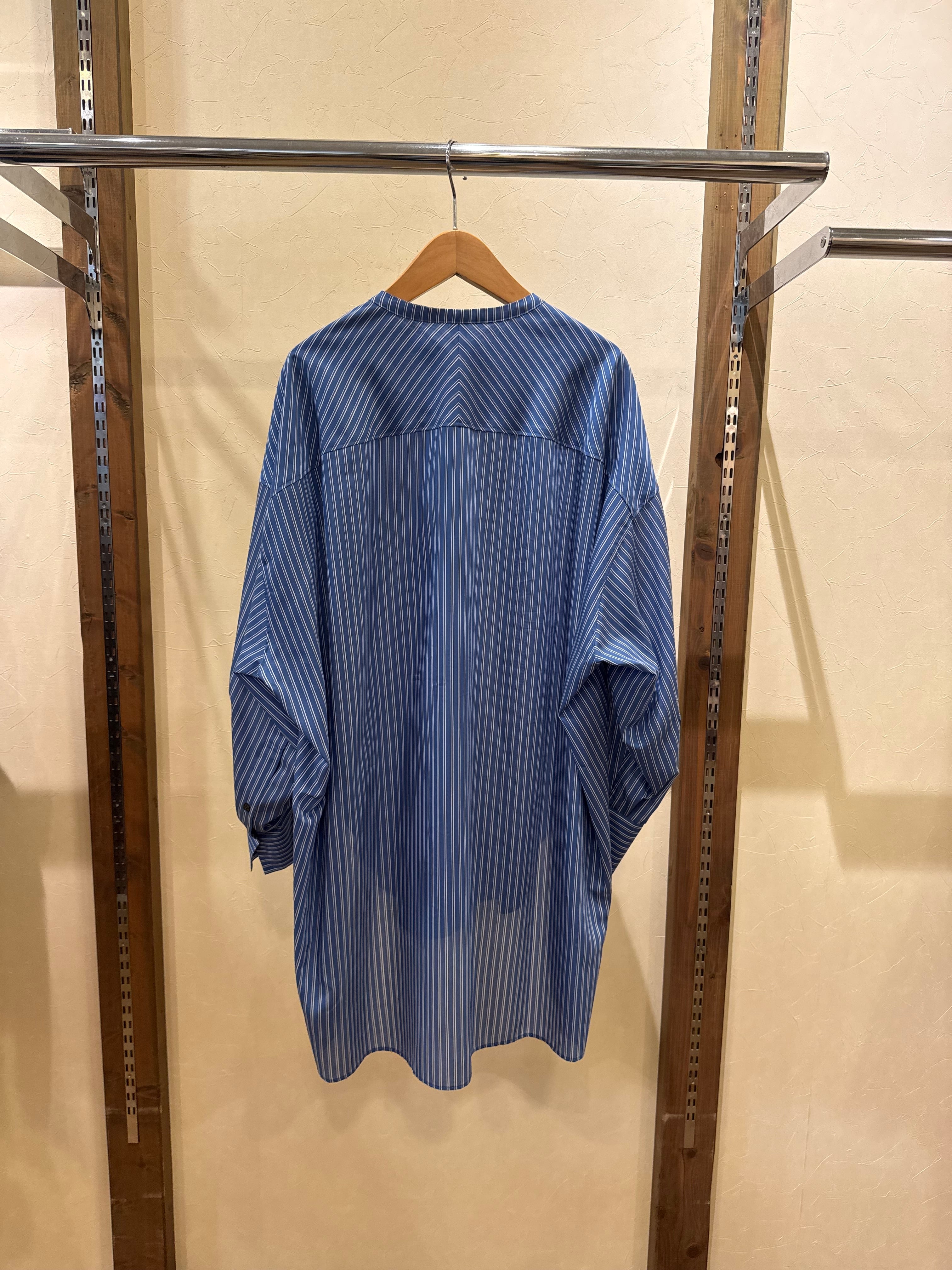 2026SS ノーカラーロングシャツ 616915 ブルー