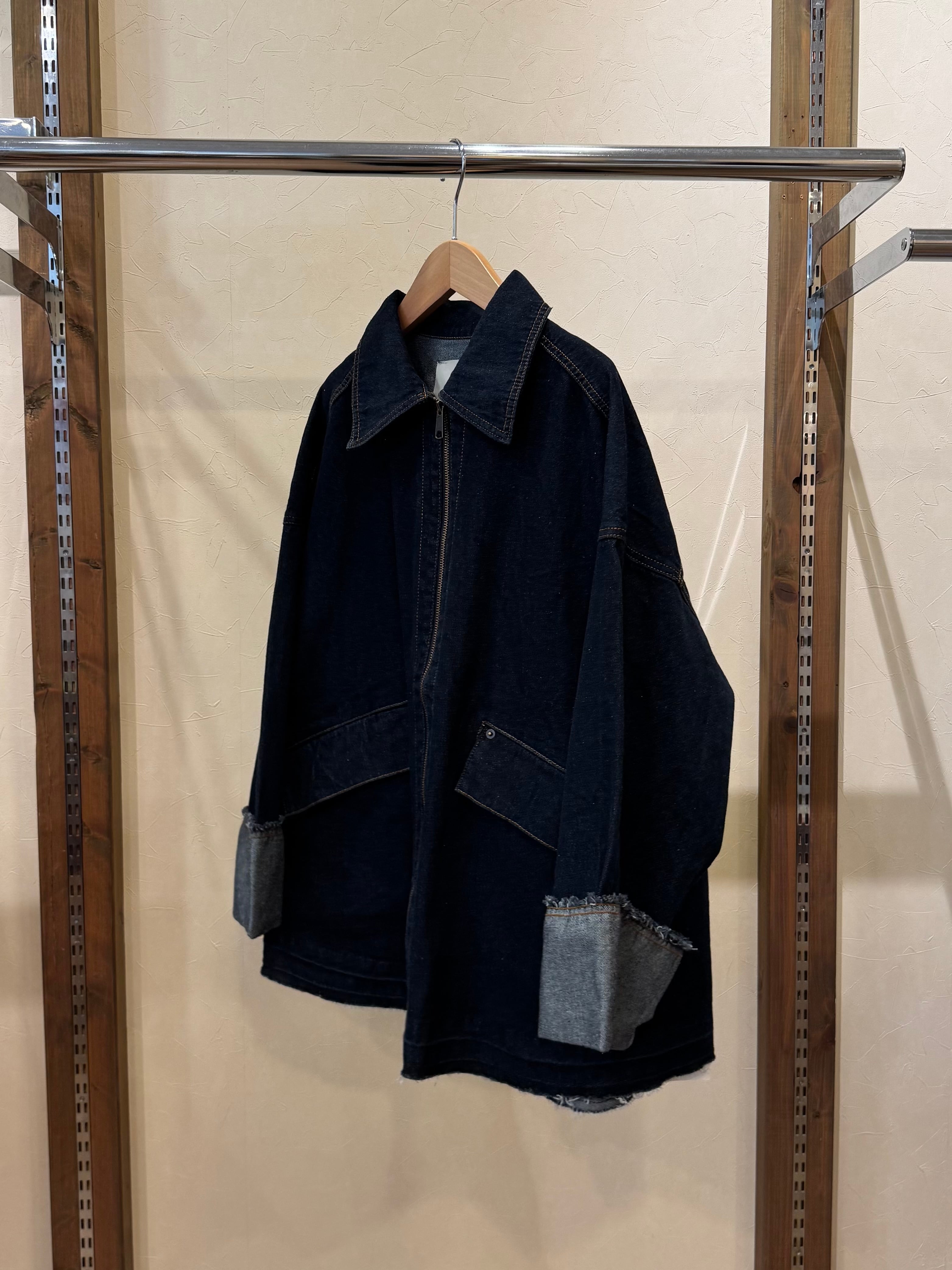 少し大きめの襟と広めの袖幅がポイントです。袖口は裁ち切りにしており、特有のused加工感が楽しめます。ファスナーはWジップにすることで、裾だけ開けたりと着こなしが楽しめます。