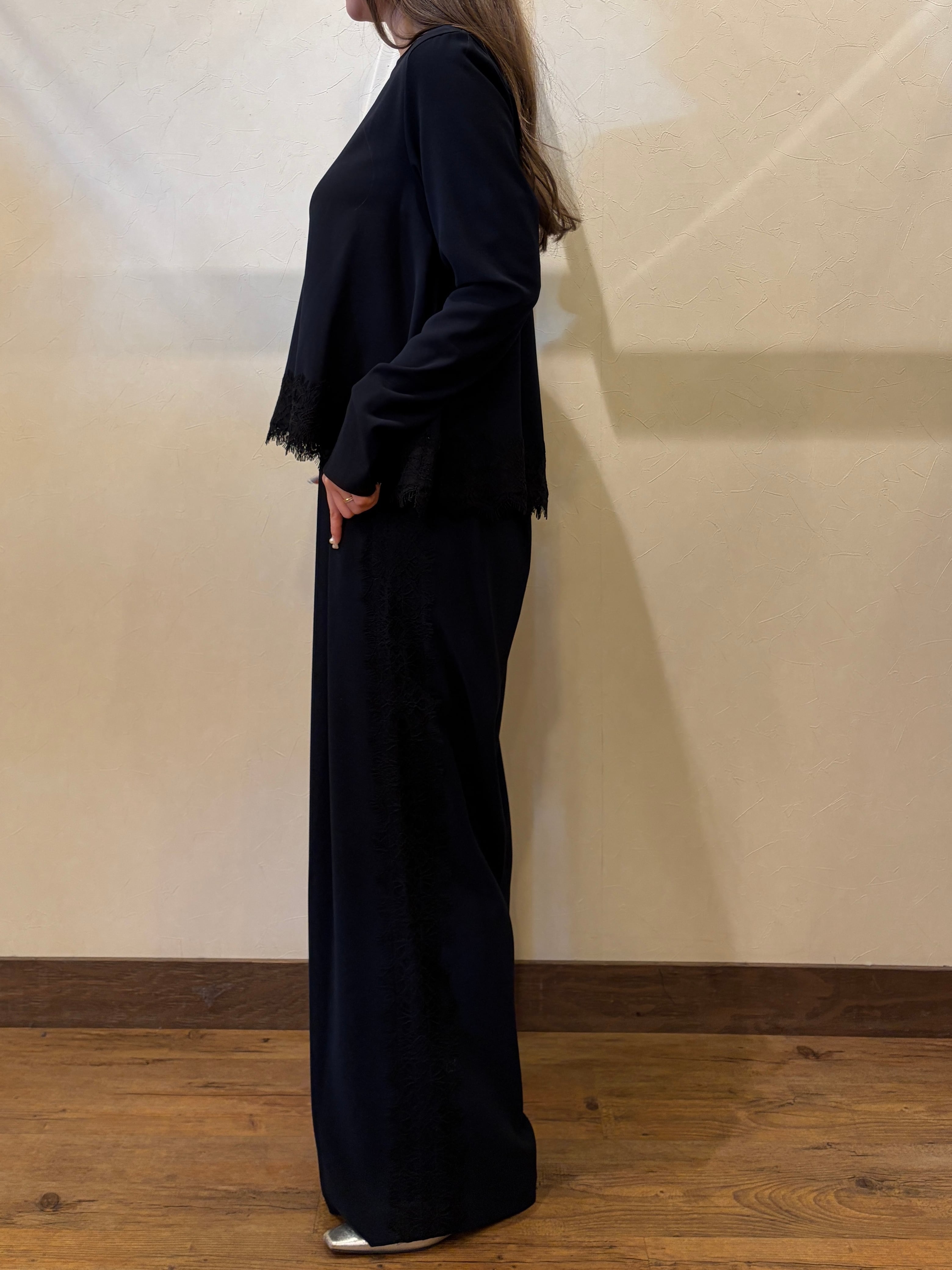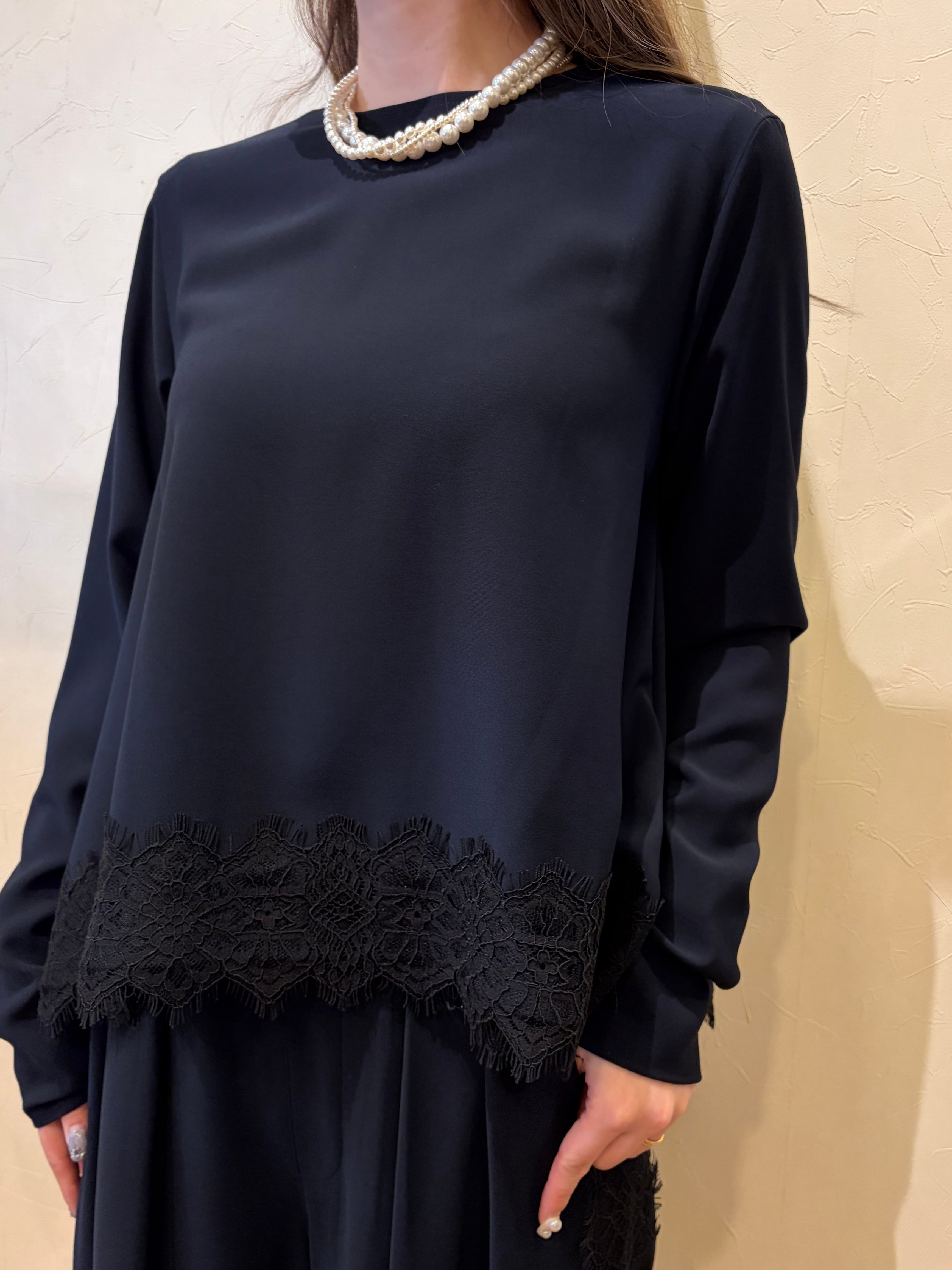 繊細なレース使いが目を惹く、女性らしさ際立つブラウス。