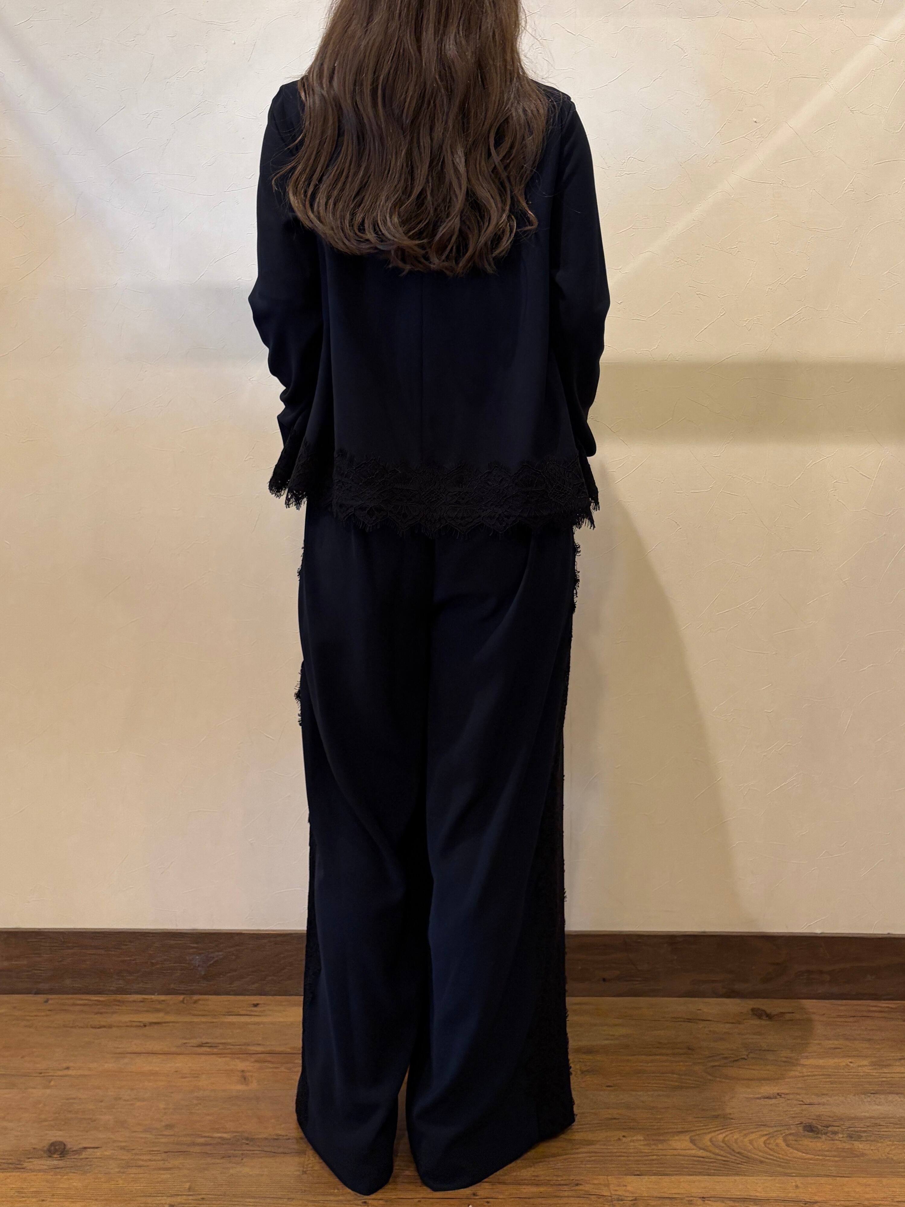 一枚で着るだけで華やかさがあり、同素材のパンツを合わせれば洗練されたセットアップスタイルに。インナーなど合わせるアイテムをあれこれ悩まずにスタイリングが完成するのもうれしいポイント。
