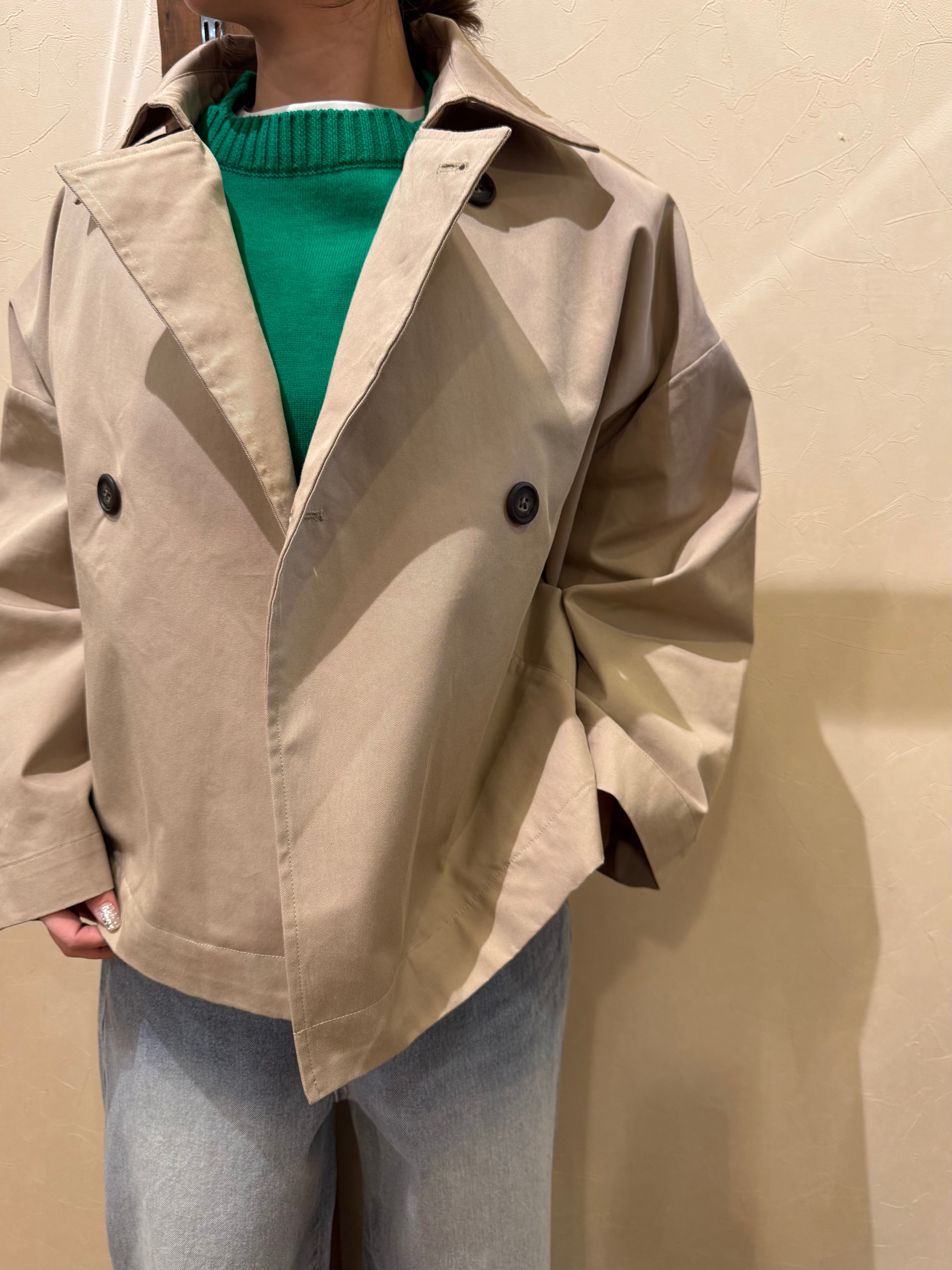 ほどよいハリ感、ちょうど良いツヤ感、サラッとした肌触りが心地良く、カジュアルにもキレイめにも着れる1枚です。スタンダードなデザインだからこそ、ゆったりとしたワイドな身幅、大きめのボタン、軽やかな着丈で今っぽいシルエットにアップデートしました!季節の変わり目に頼りになる気軽に羽織れるジャケットです。