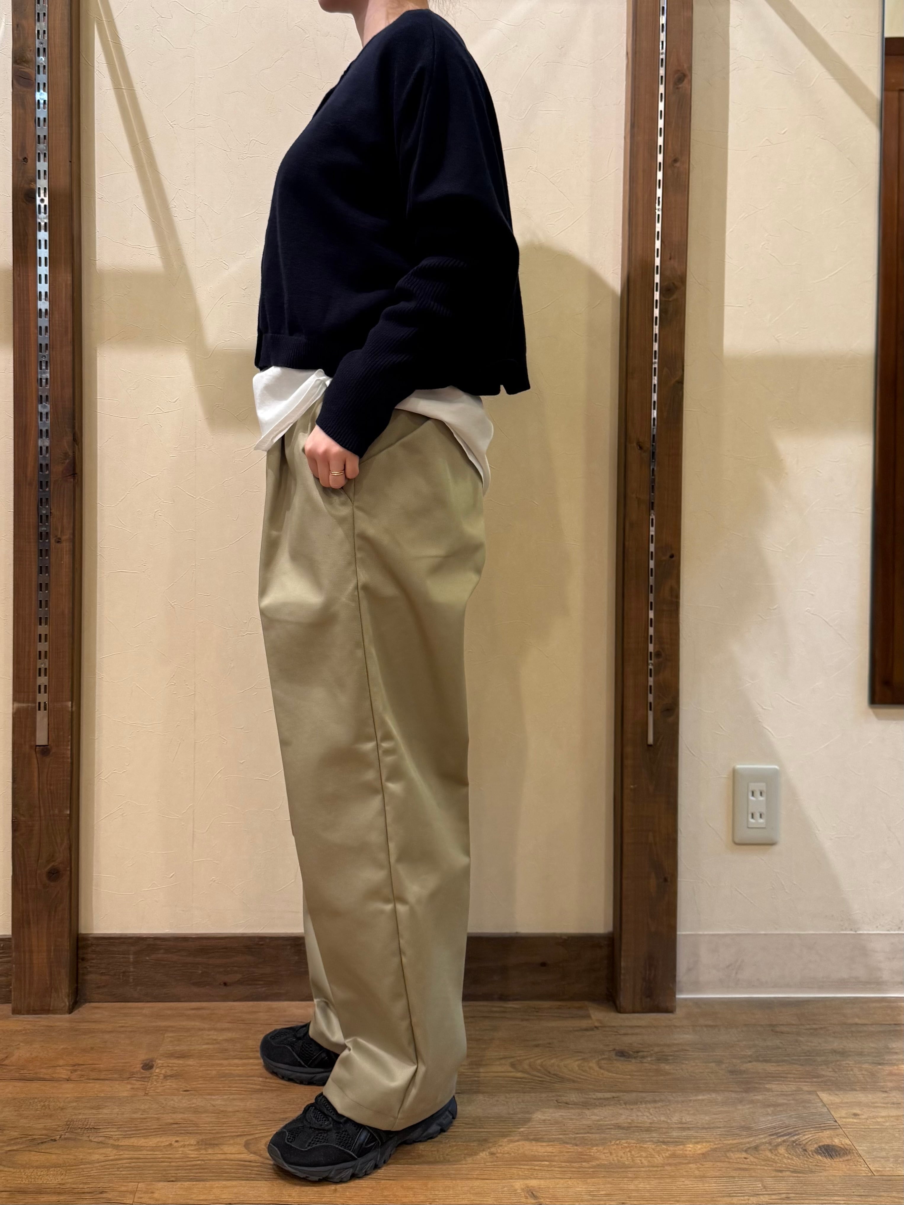 ヴィンテージワークパンツの様な風合いの、コットンポリエステルツイルを使用し、どこか懐かしいワークテイストのパンツです。