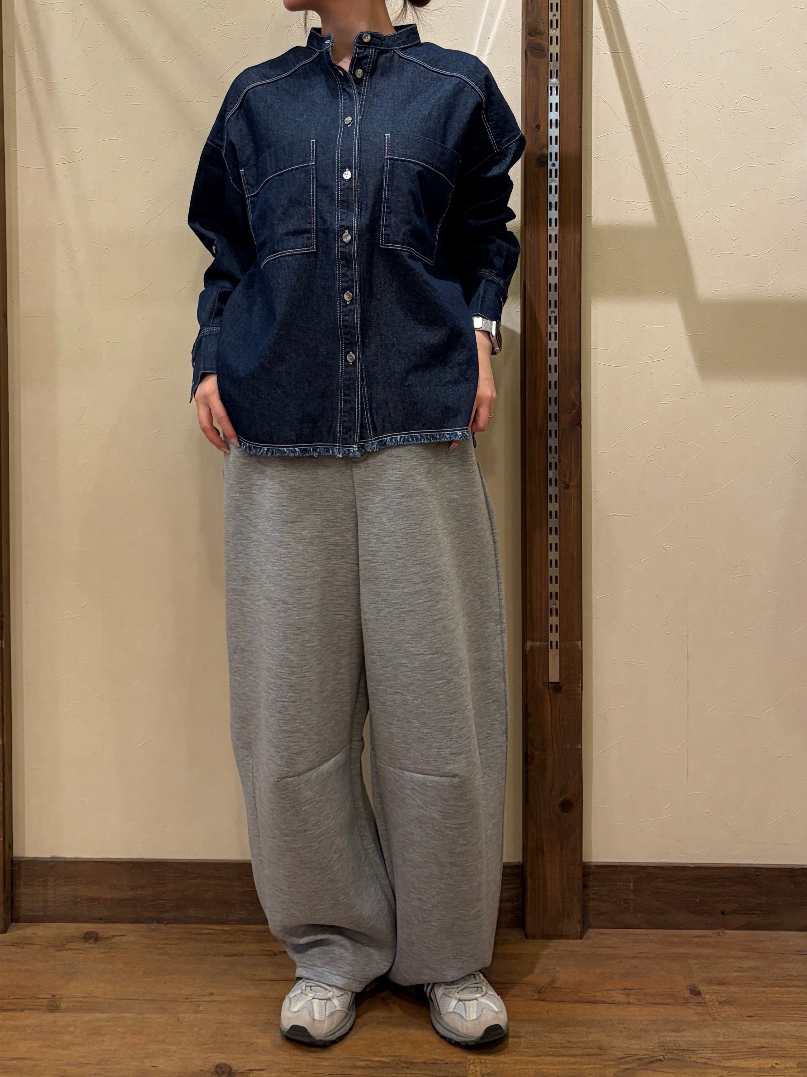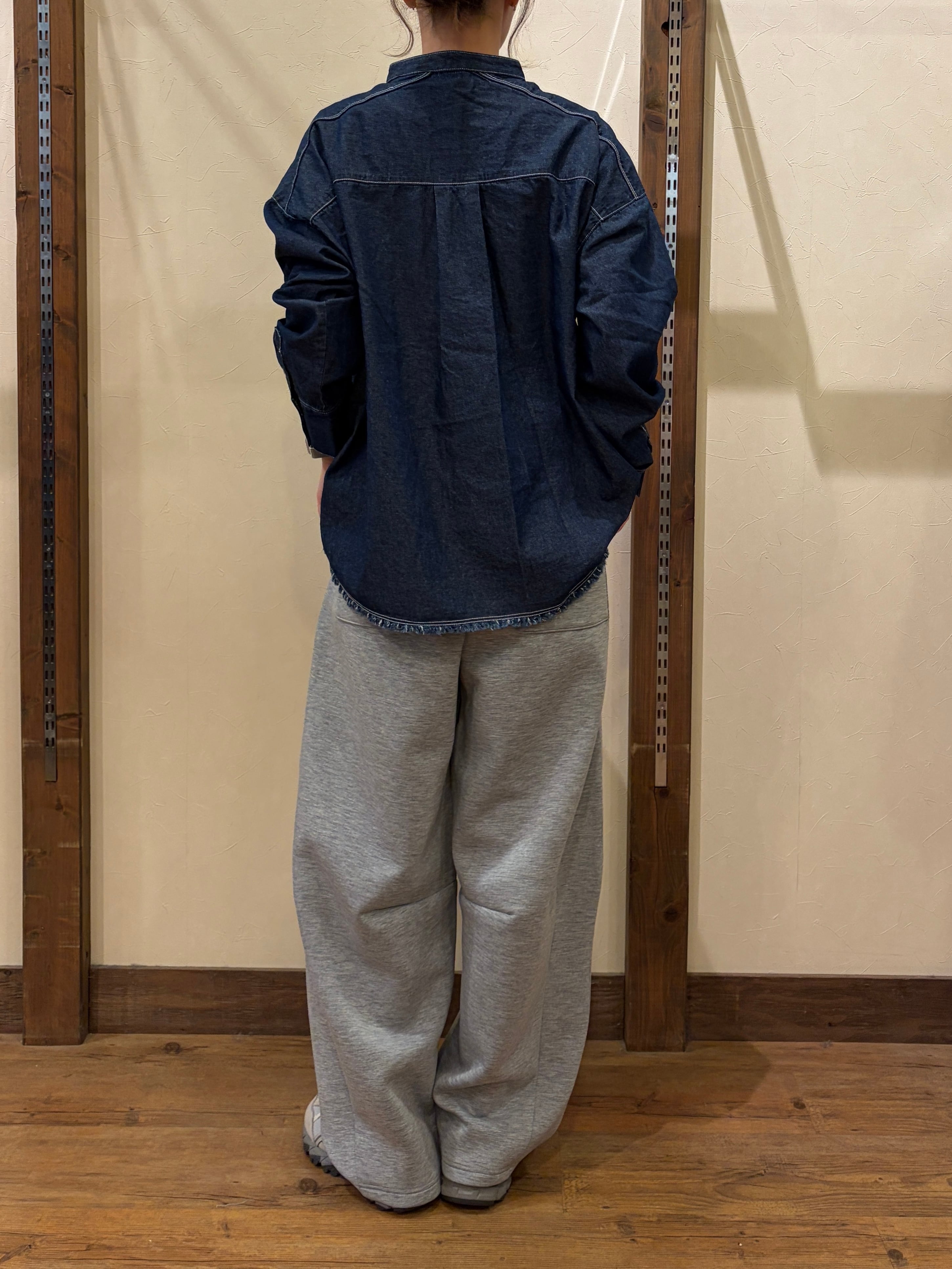 ソフトで着心地の良い風合いで、デニム特有の硬い印象はなく、柔らかい印象に仕上げています。