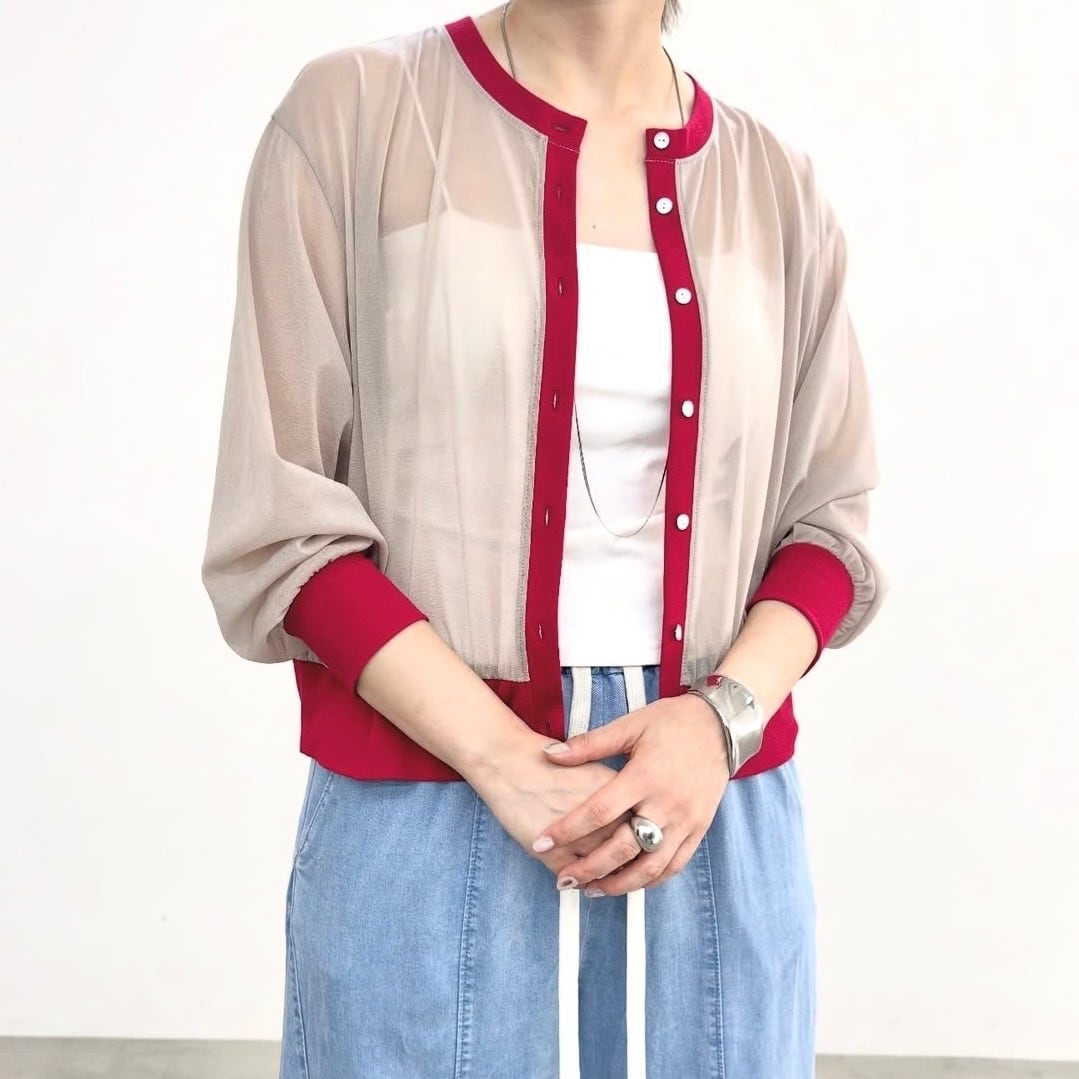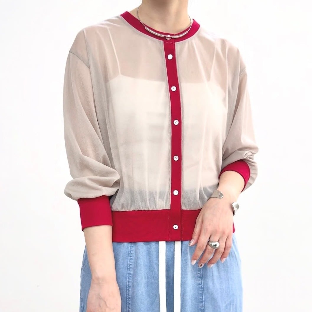 2026SS qtume バイカラーシアーカーディガン 610-35032