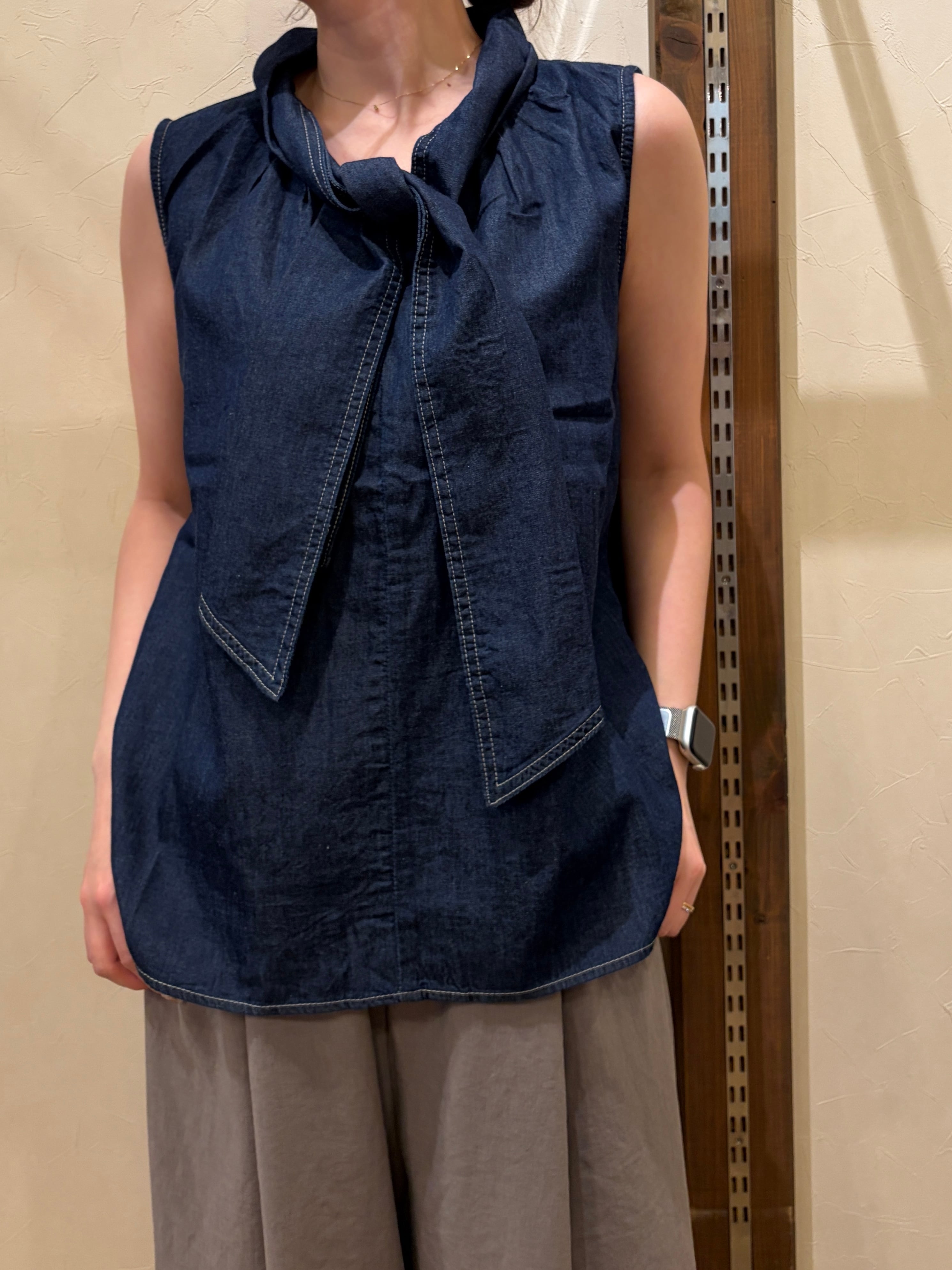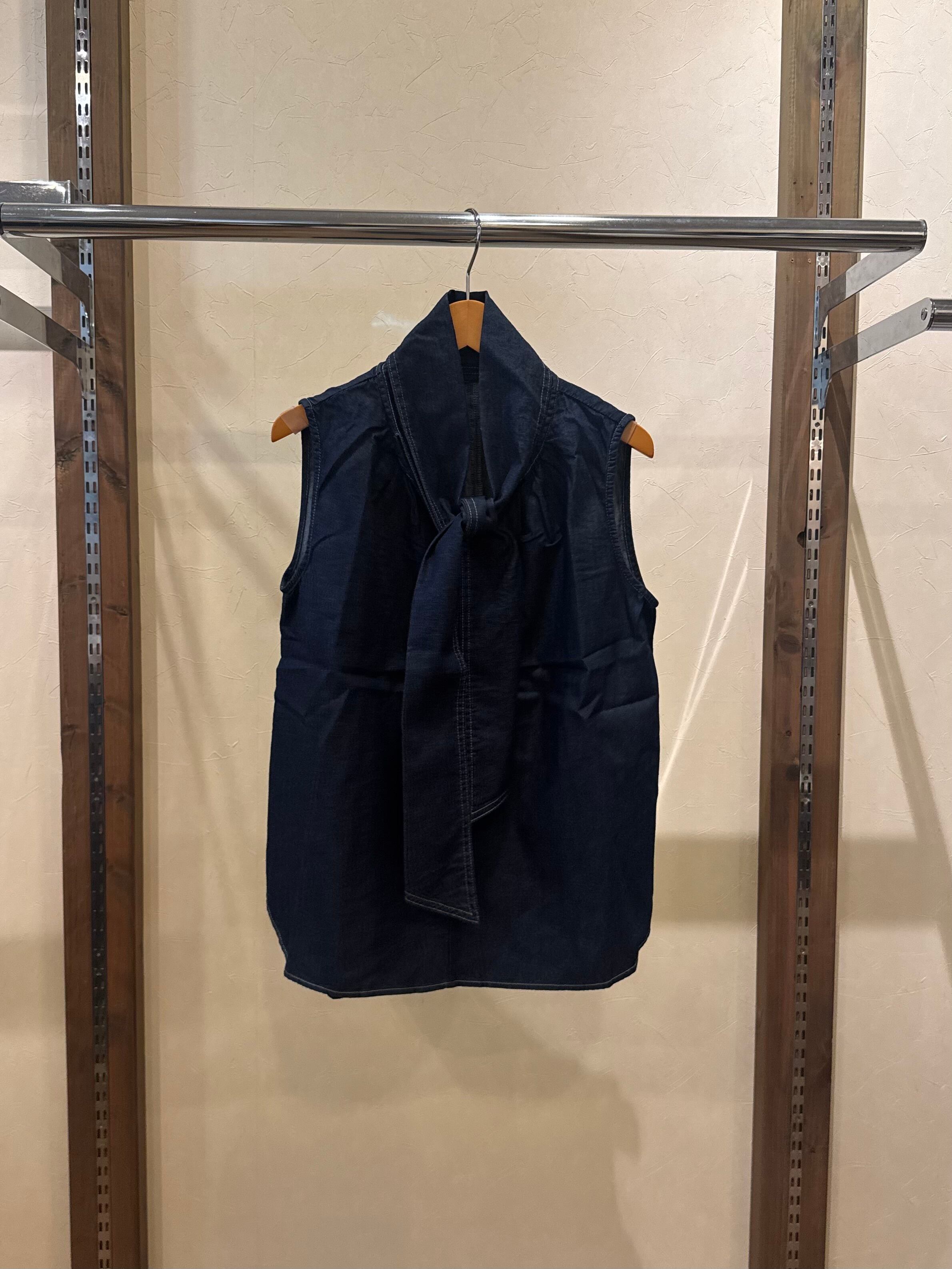 2026SS qtume ボウタイ ノースリーブ デニムシャツ 622-25001