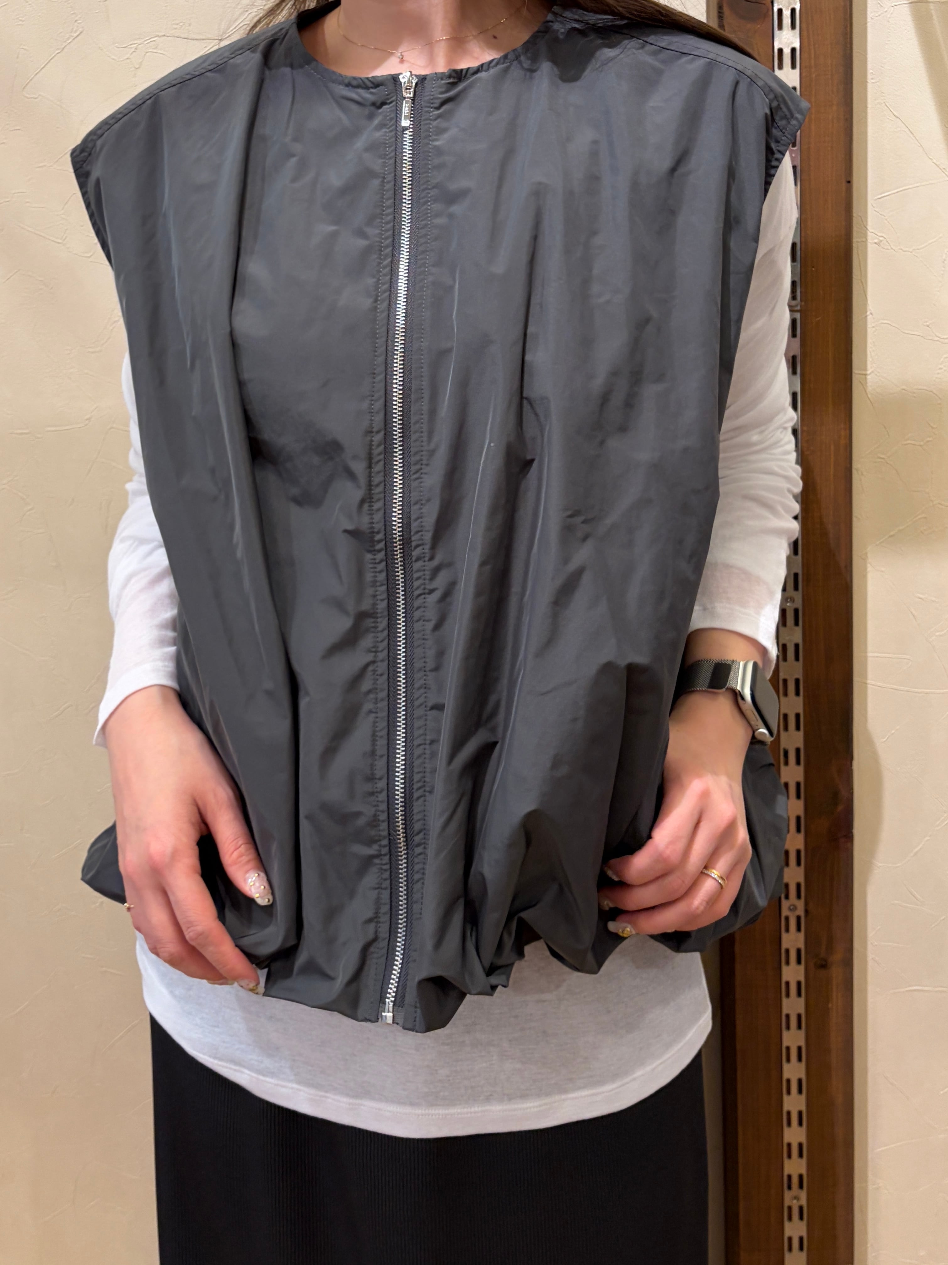 裾に向かってふんわりと丸みを帯びたバルーンシルエット。 首元がすっきりとしたデザインなので、シャツやTシャツ、パーカーなどいろいろなトップスとレイヤードして楽しめる1着です。