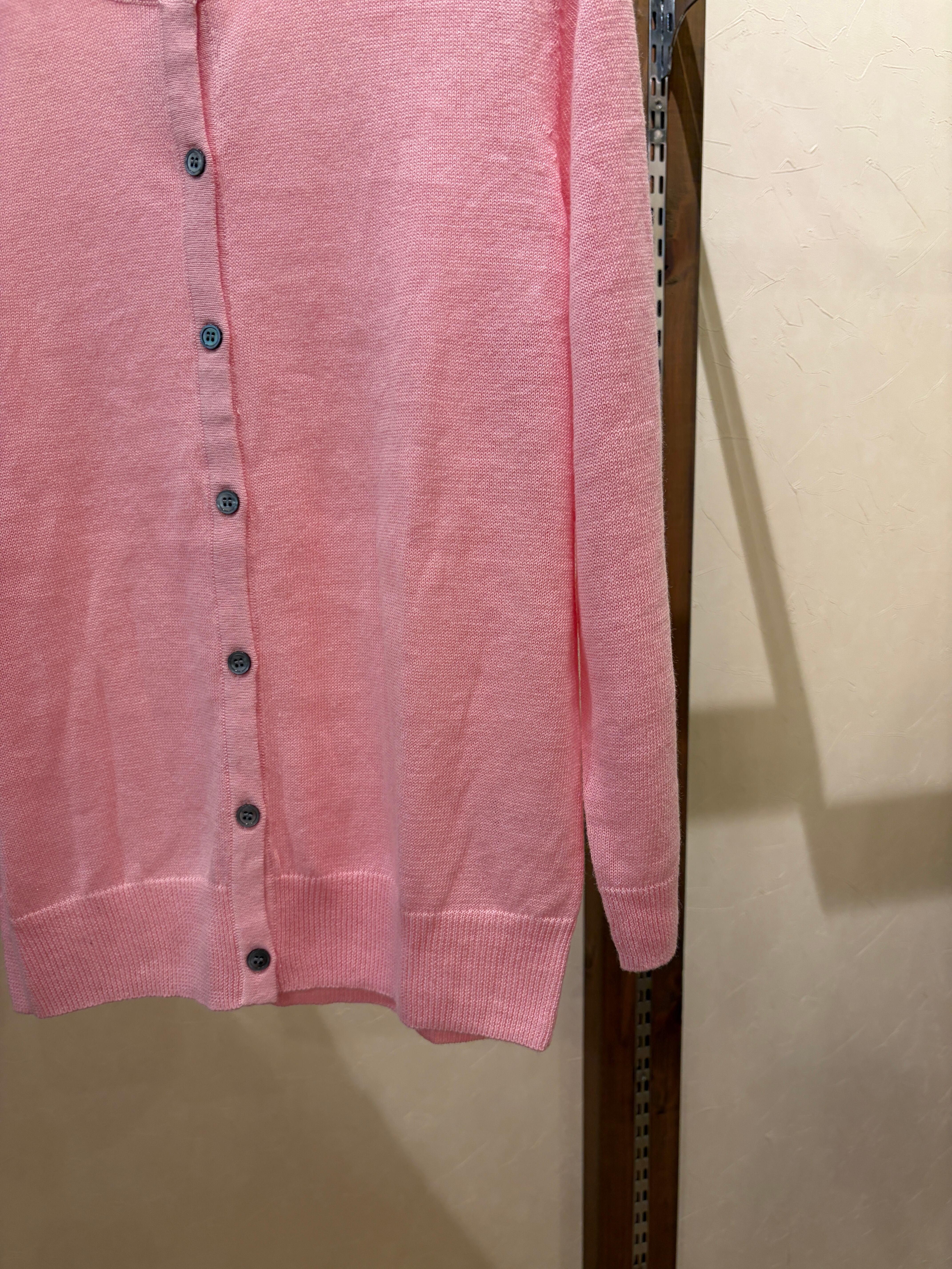 UV加工を施したリネン100%の糸を使用したクルーネックカーディガンです。mao madeの夏の定番商品です。